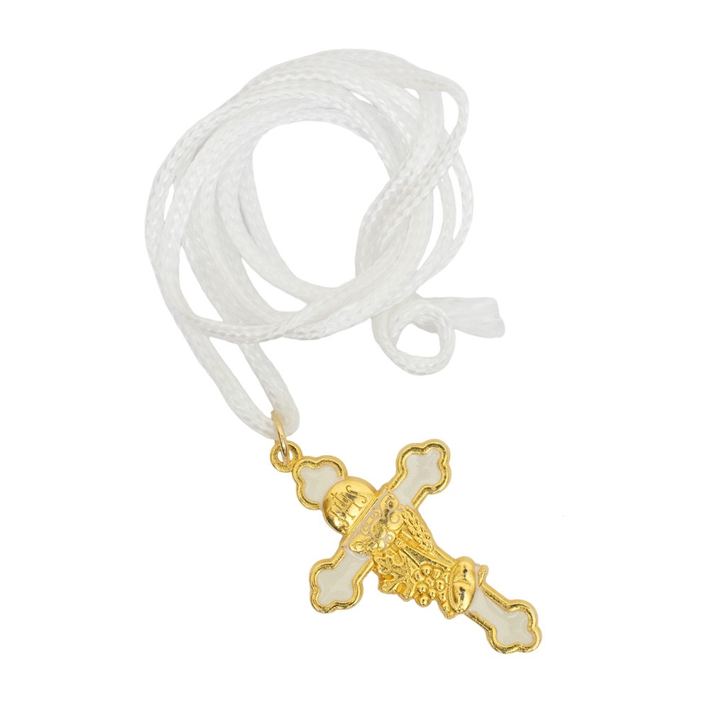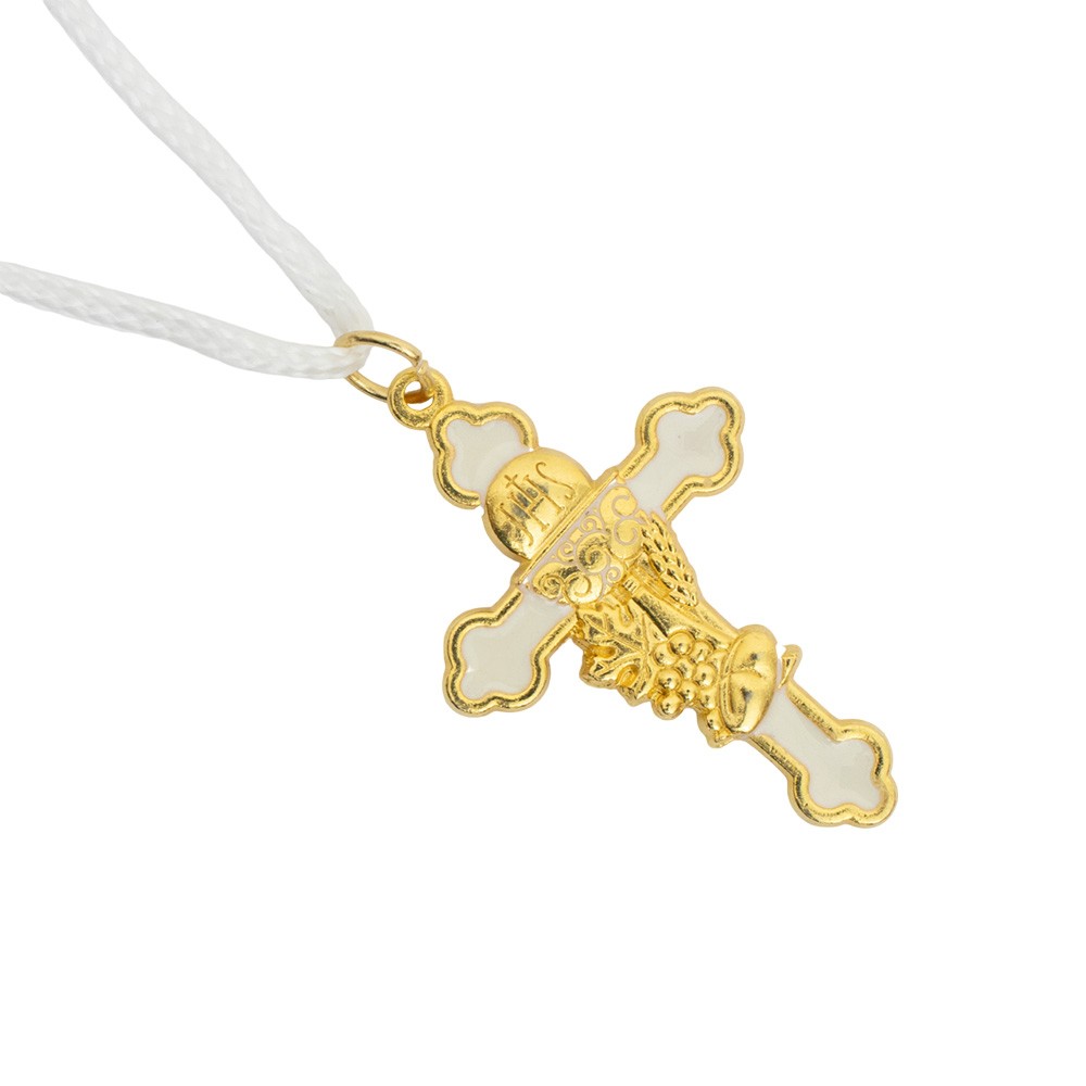 Croce pendente Prima Comunione completa di laccetto bianco.