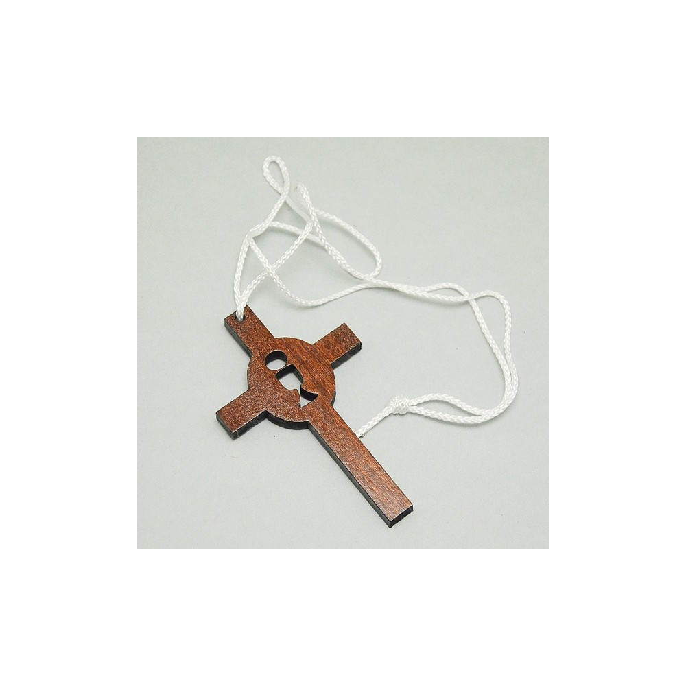 Croce legno per tunichetta Prima Comunione completa di laccio bianco.
