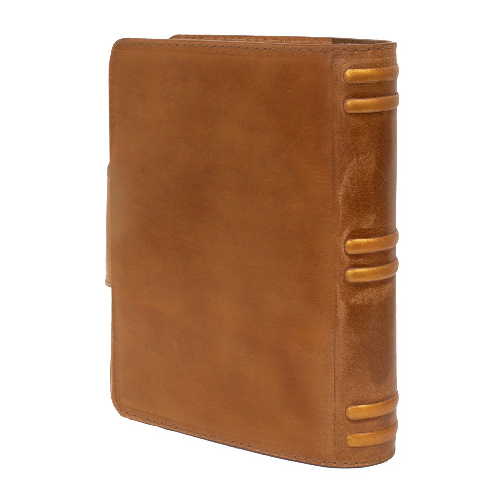 Custodia Bibbia in vera pelle con bottone, dimensioni 21x16 cm.