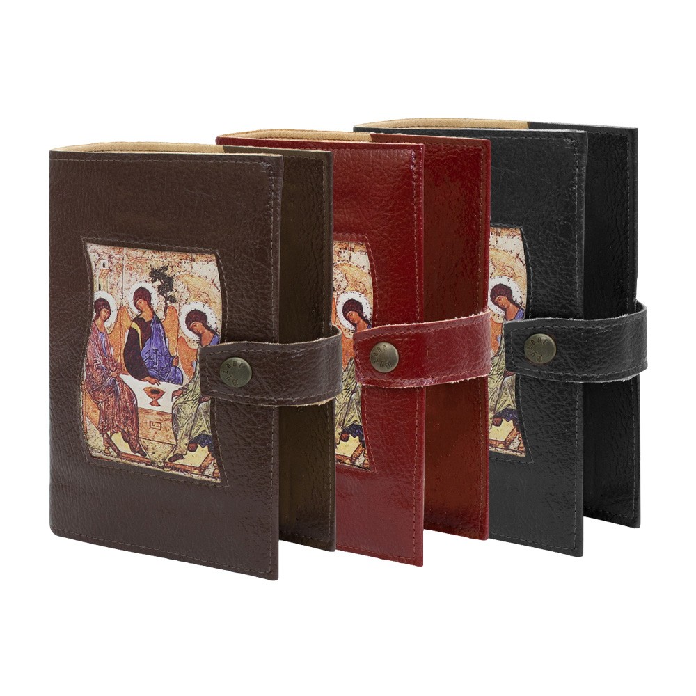 Custodia in pelle per la liturgia delle ore 4 volumi con bottone per la chiusura.