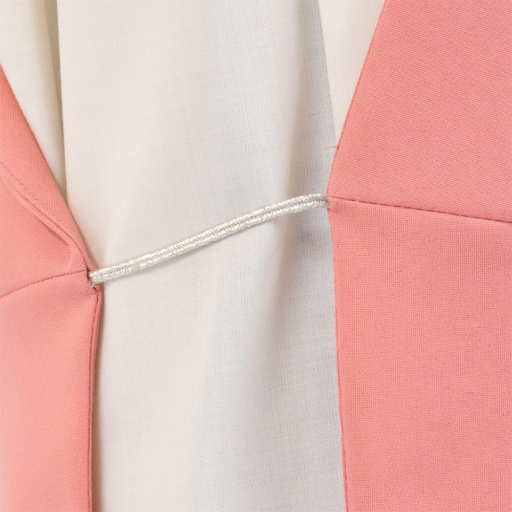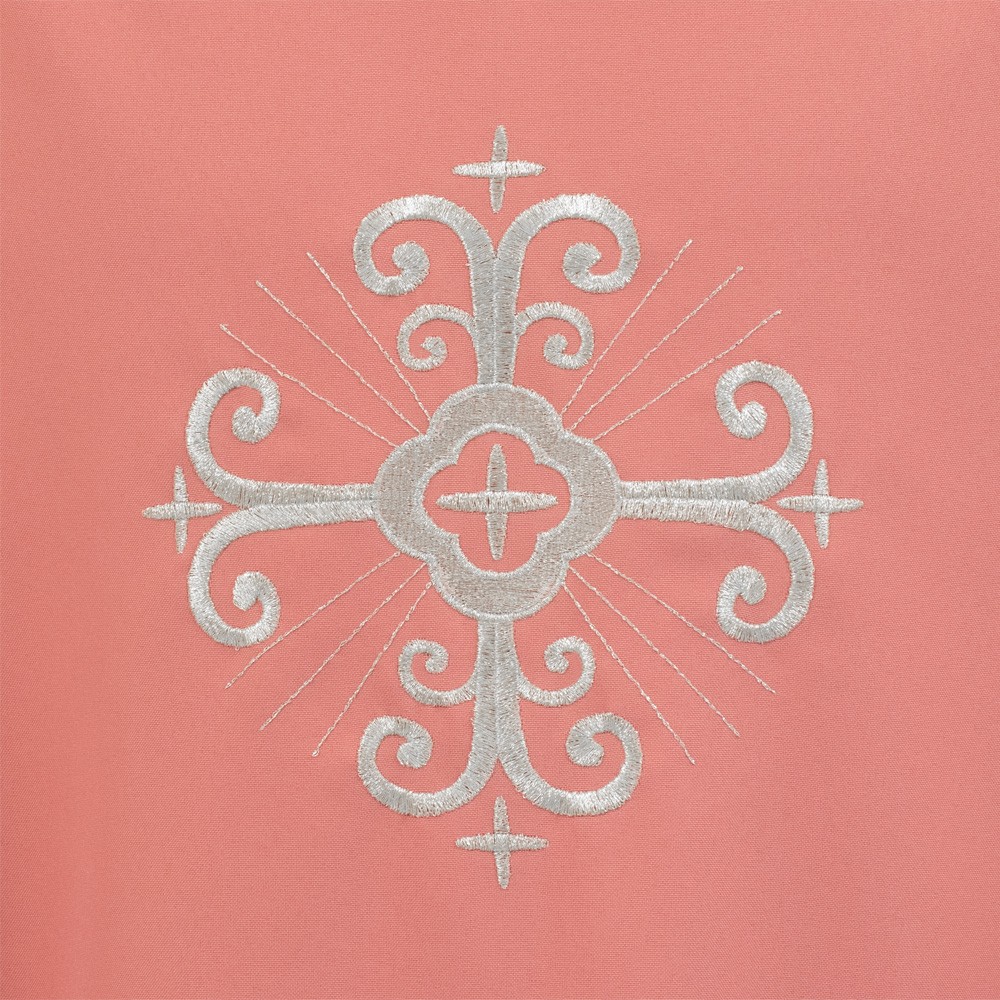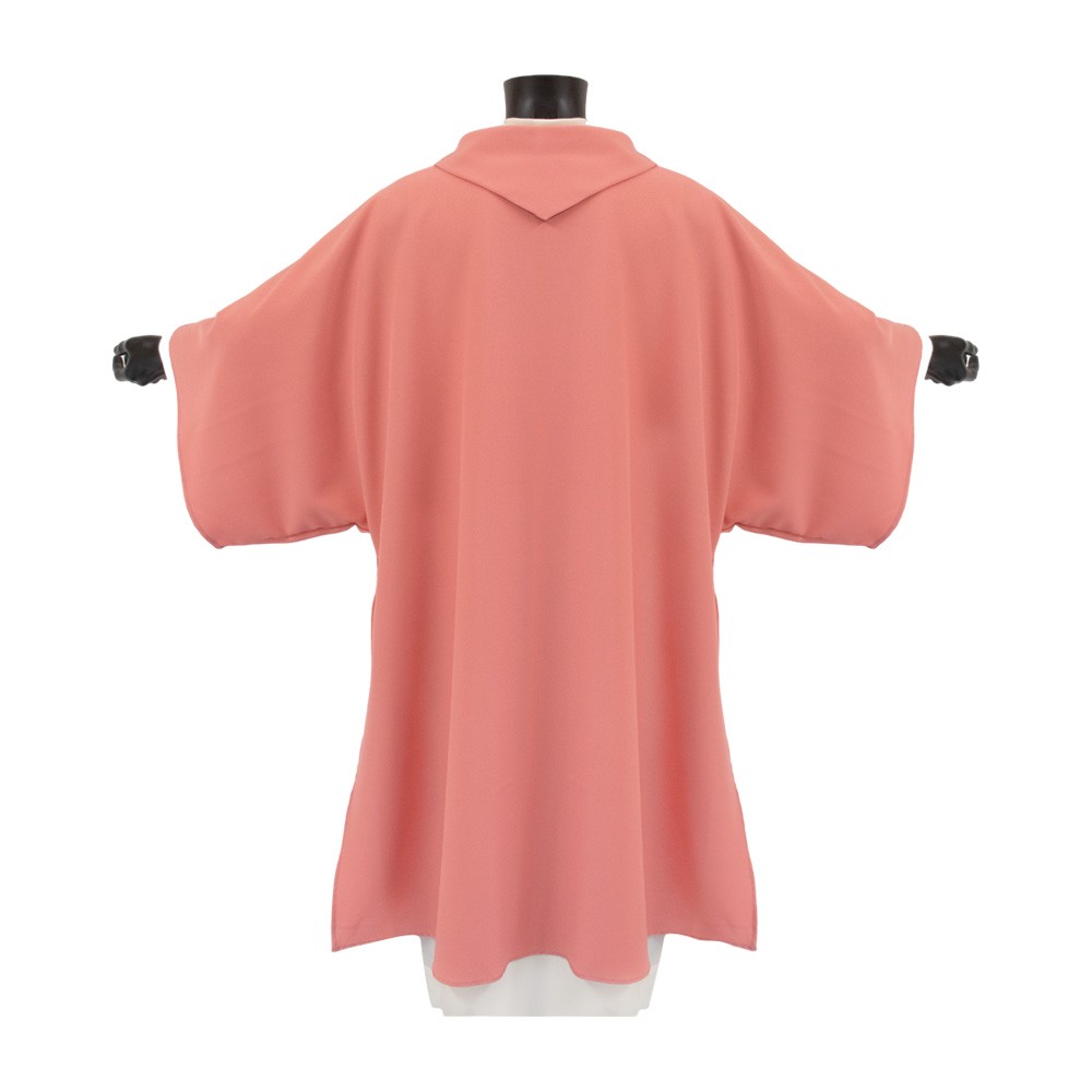 Dalmatica per diacono rosa con collo ad anello, realizzata in resistente e leggero tessuto 100% poliestere.