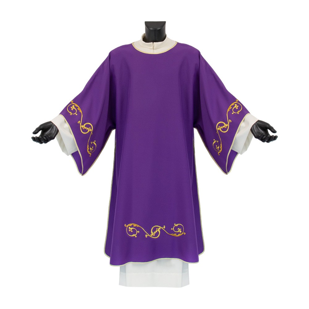 Dalmatica liturgica per diacono realizzata in tessuto 100% poliestere.