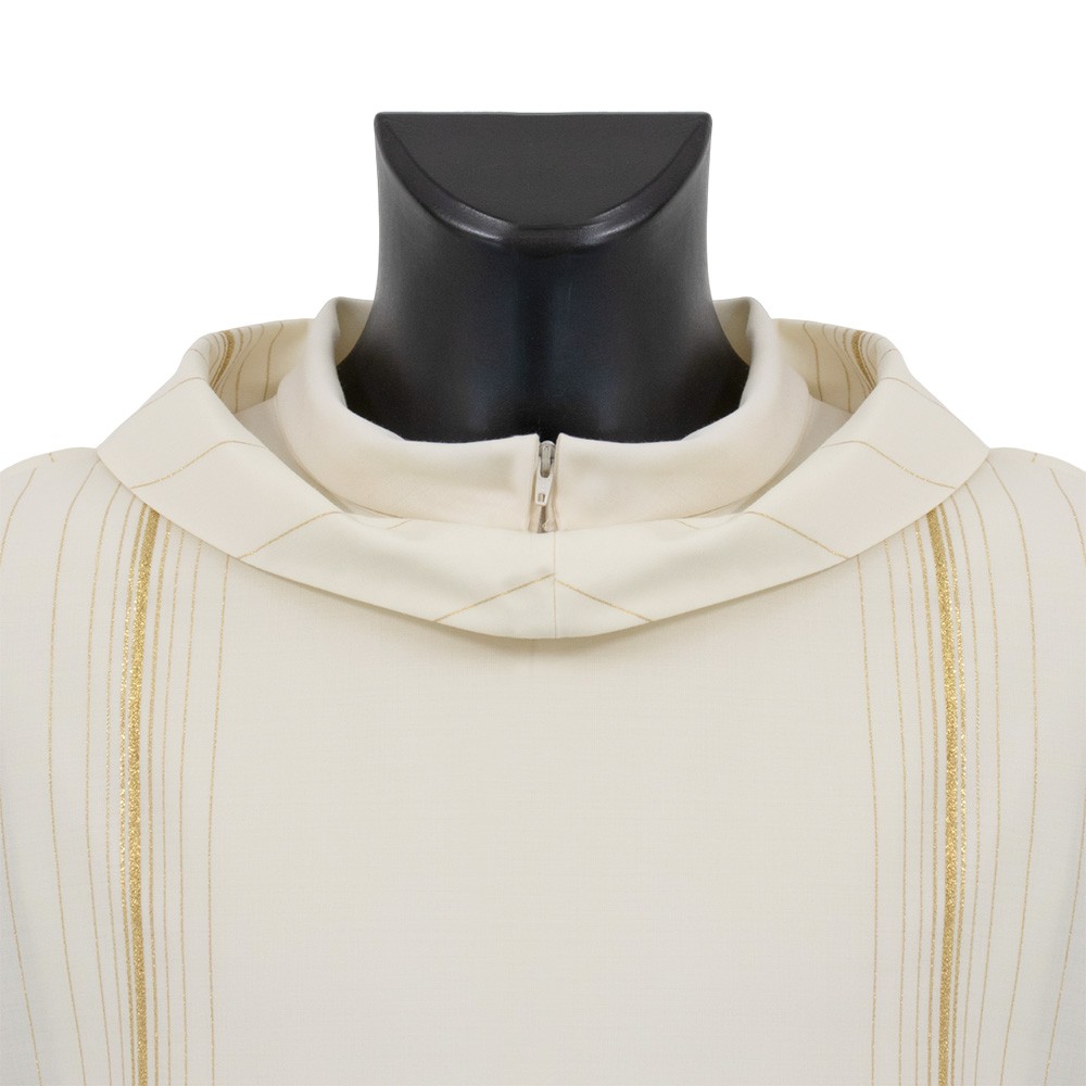 Dalmatica diaconale avorio confezionata in tessuto misto lana rigato.