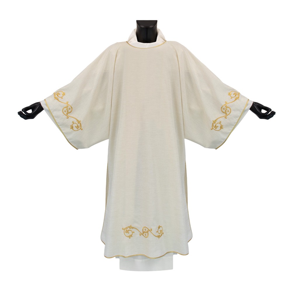 Dalmatica liturgica avorio confezionata in tessuto misto lana.
