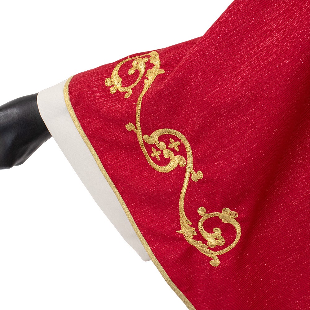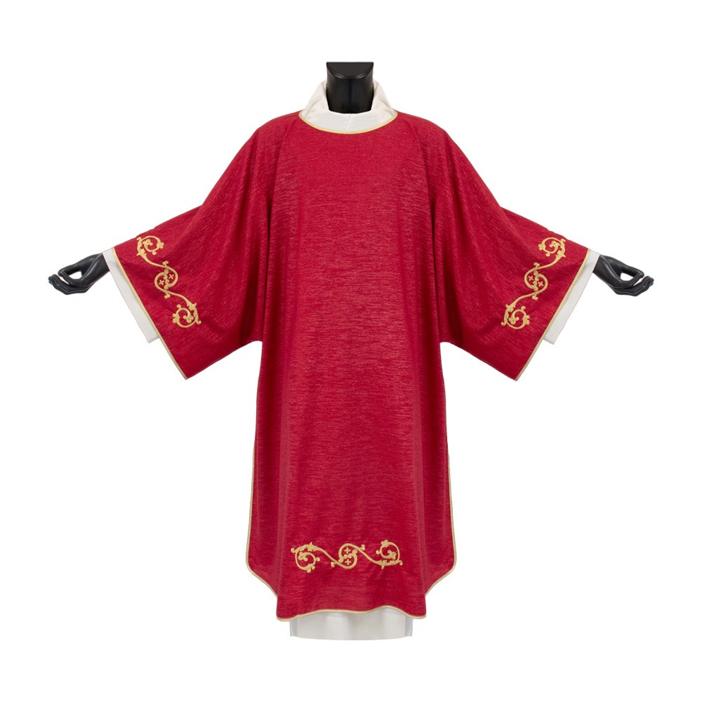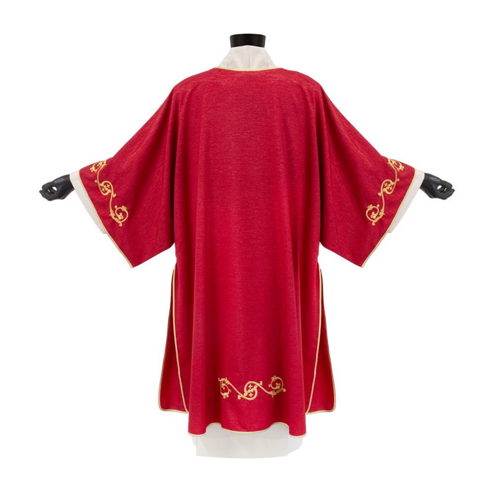 Dalmatica liturgica rossa confezionata in tessuto misto lana.