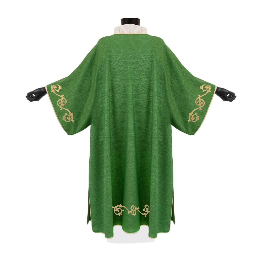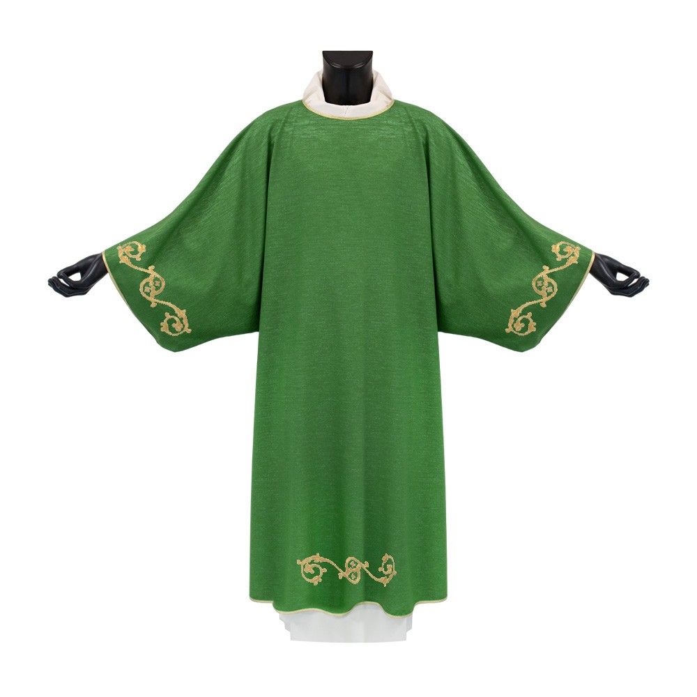 Dalmatica da diacono verde confezionata in tessuto misto lana.