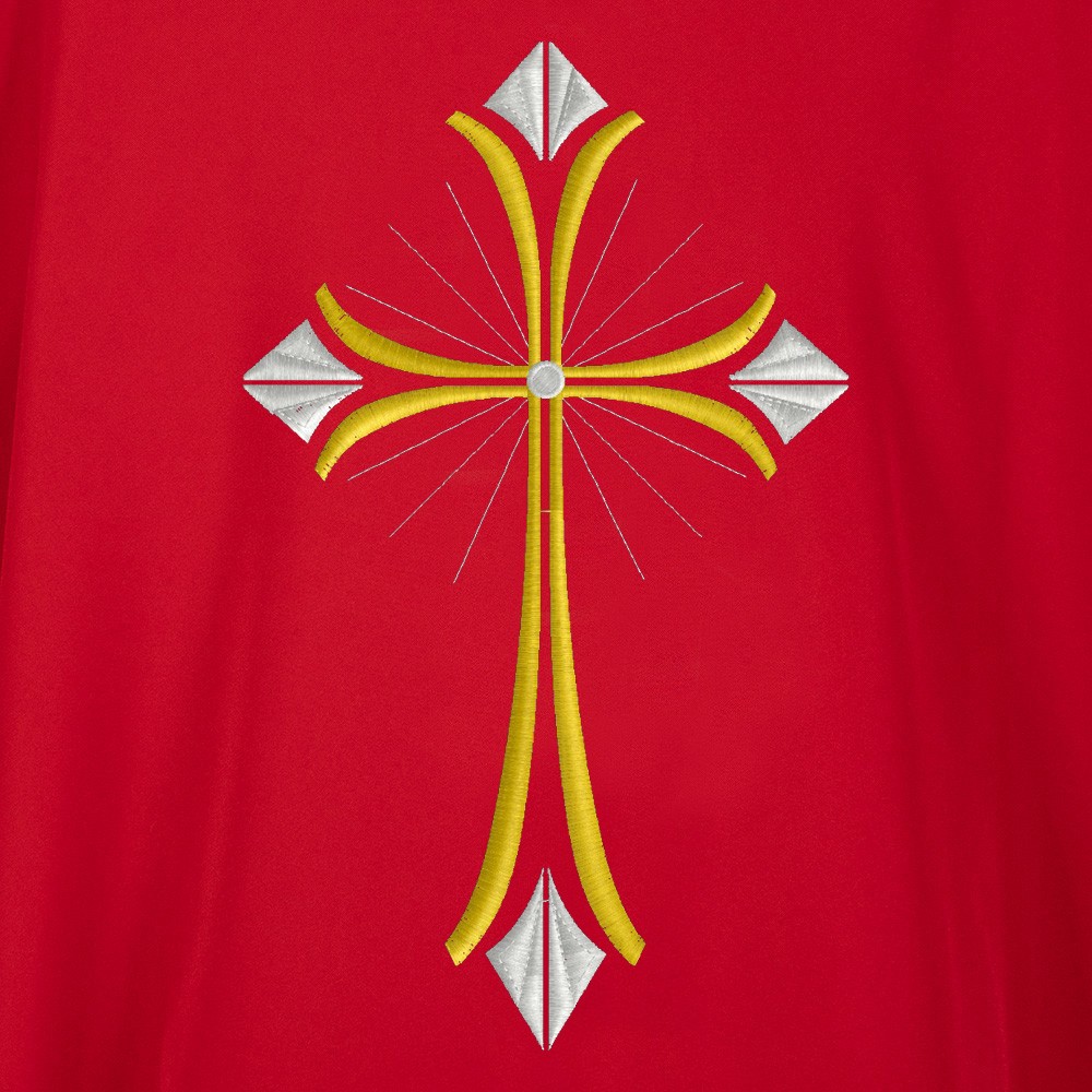 Il ricamo presente sia sul fronte che sul retro del paramento è eseguito accuratamente a macchina, utilizzando filati di ottima qualità.