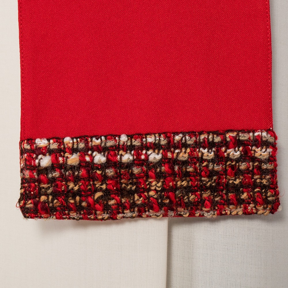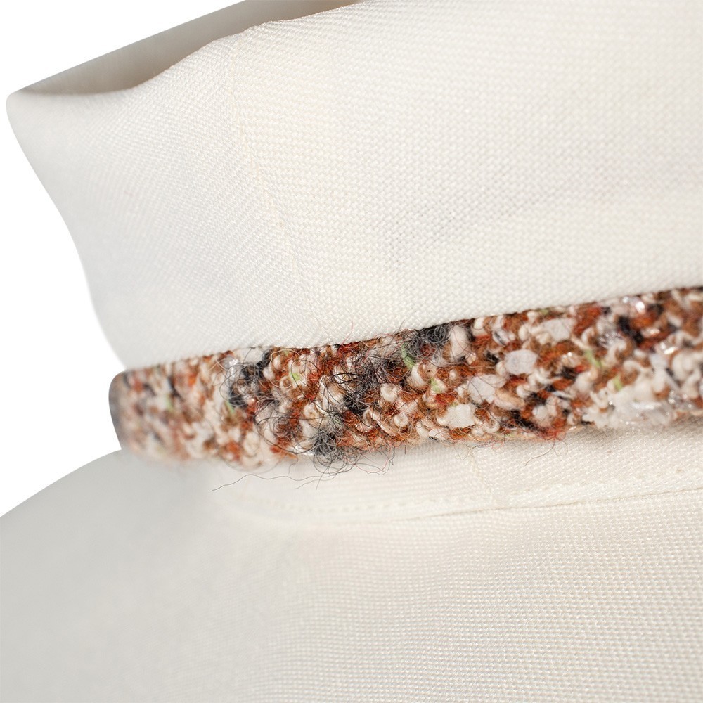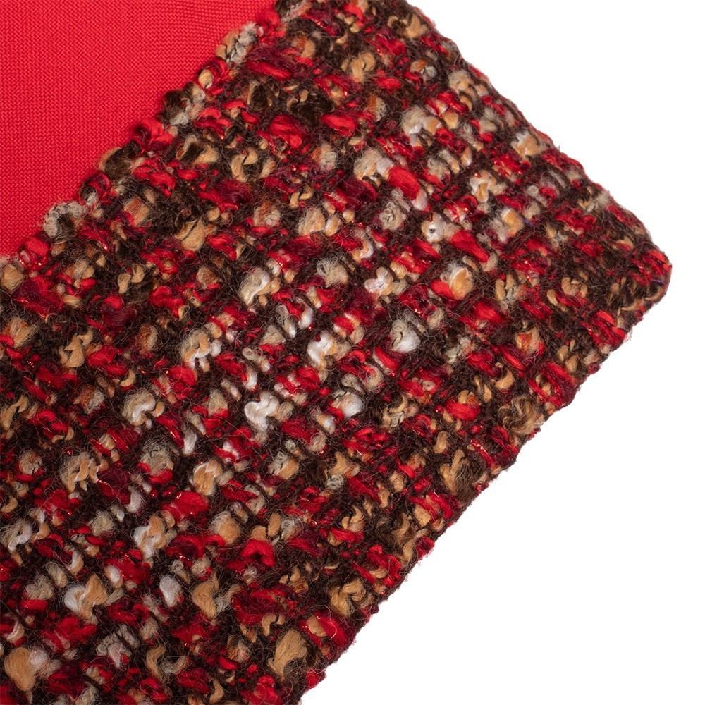 Confezionata in misto lana con decori dorati.