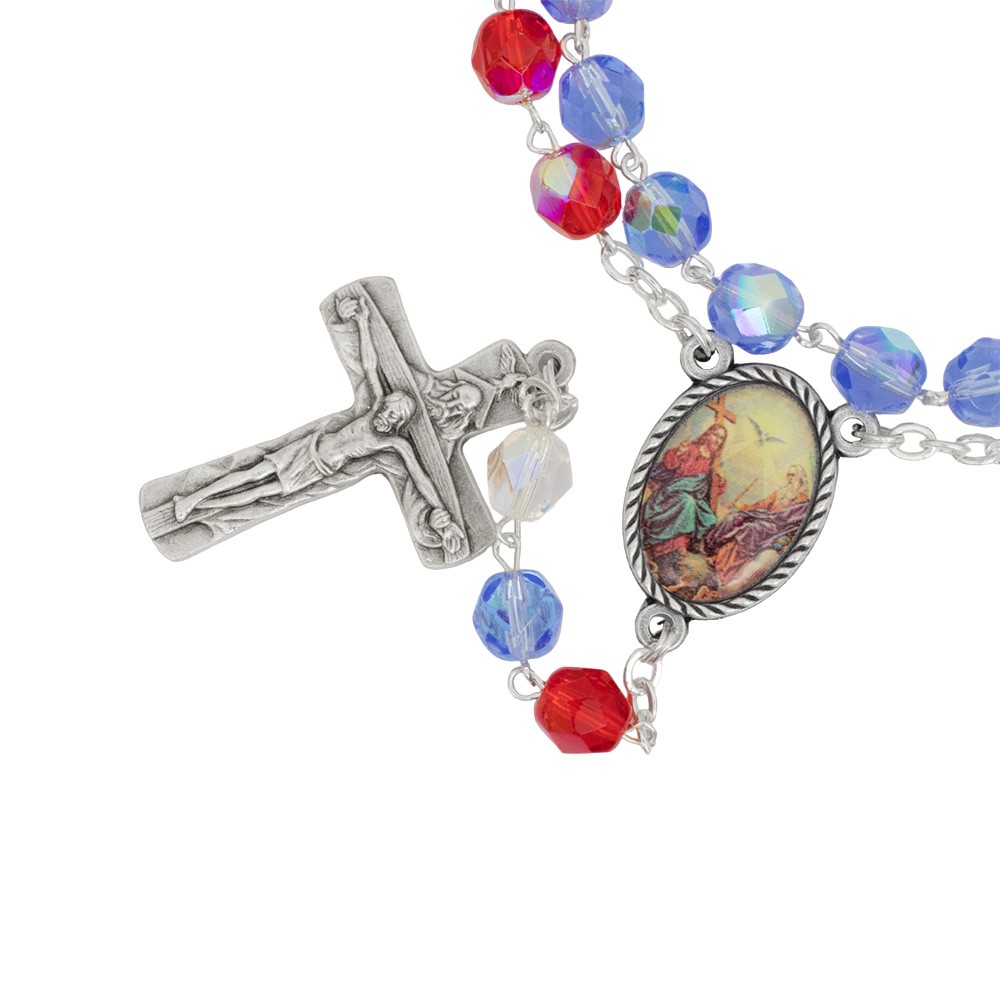 Coroncina del Santo Rosario dedicato alla gloria della santissima Trinità, confezionata in blister di PVC assieme al libretto.