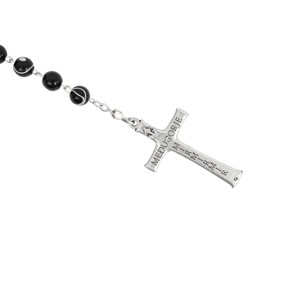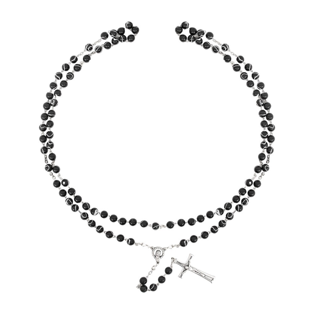 Realizzata con grani tondi, catena, crociera e croce in metallo.