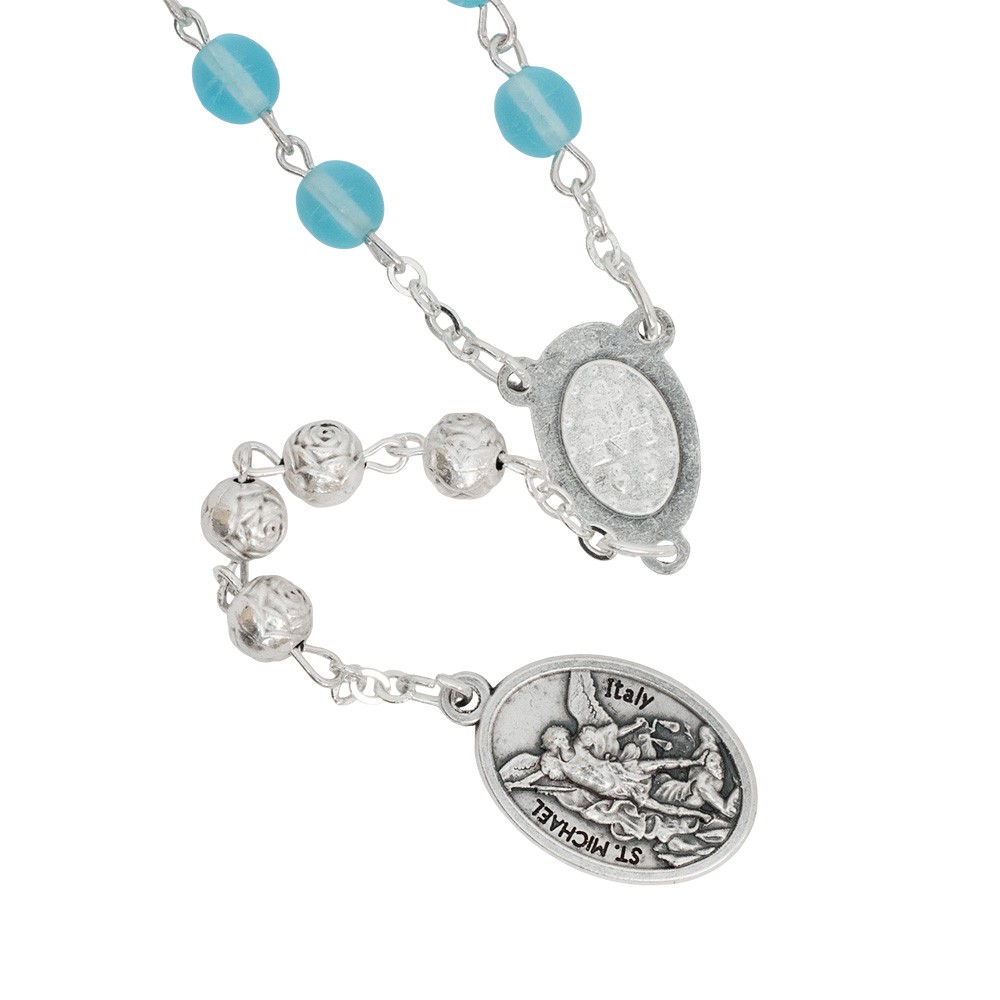 Rosario a San Michele Arcangelo in vetro sfaccettato con pater in metallo.