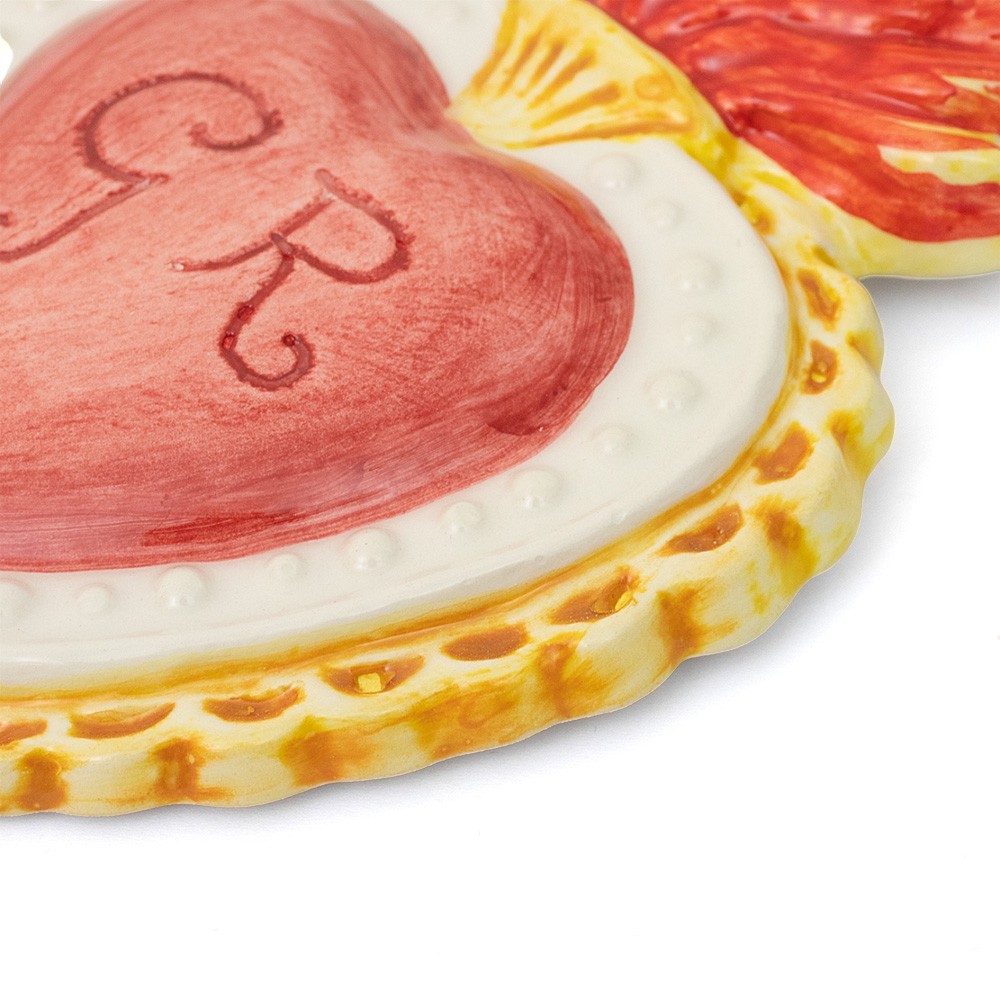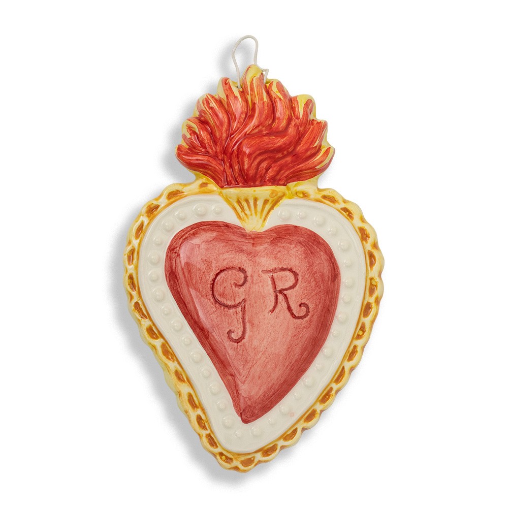 Cuore Votivo realizzato in ceramica bianca e colorata. Al centro del cuore sono incise le iniziali GR "Grazia Ricevuta".