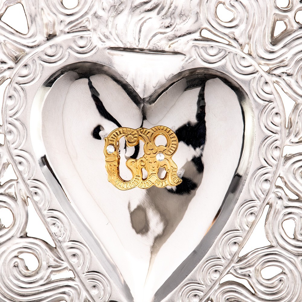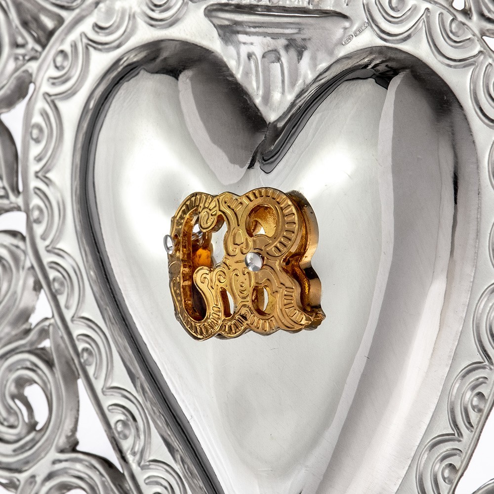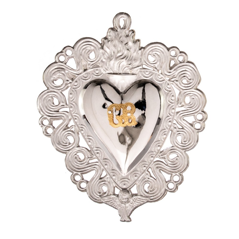 Cuore votivo in metallo con monogramma Mariano.
