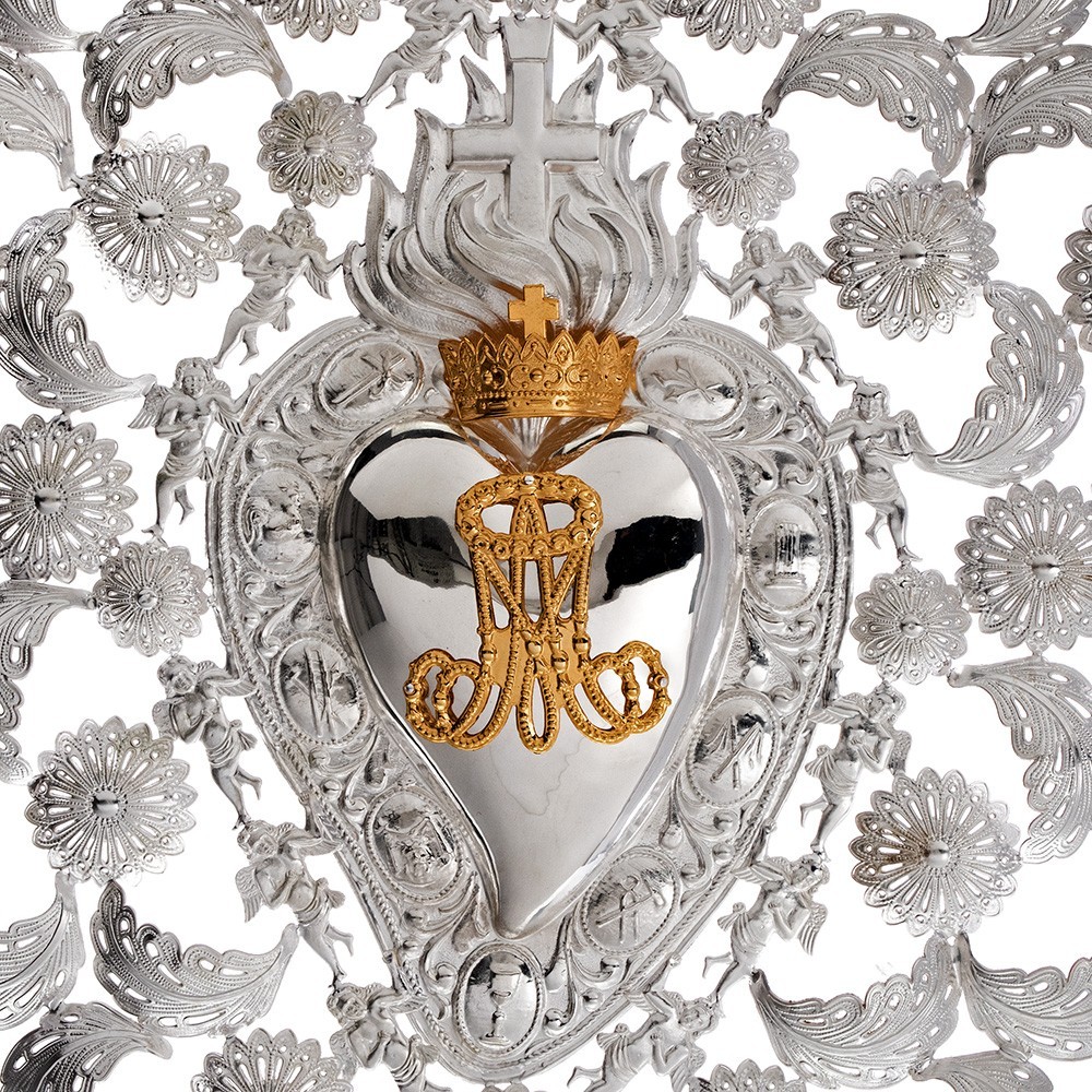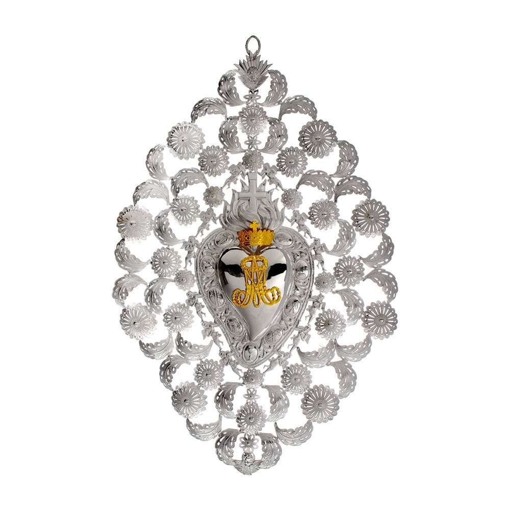 Cuore votivo in metallo con monogramma Mariano.