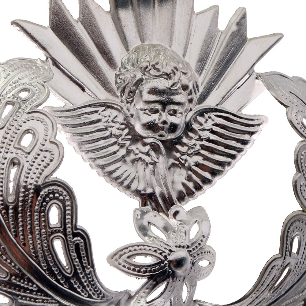 Cuore Votivo in metallo con angeli e fiori.