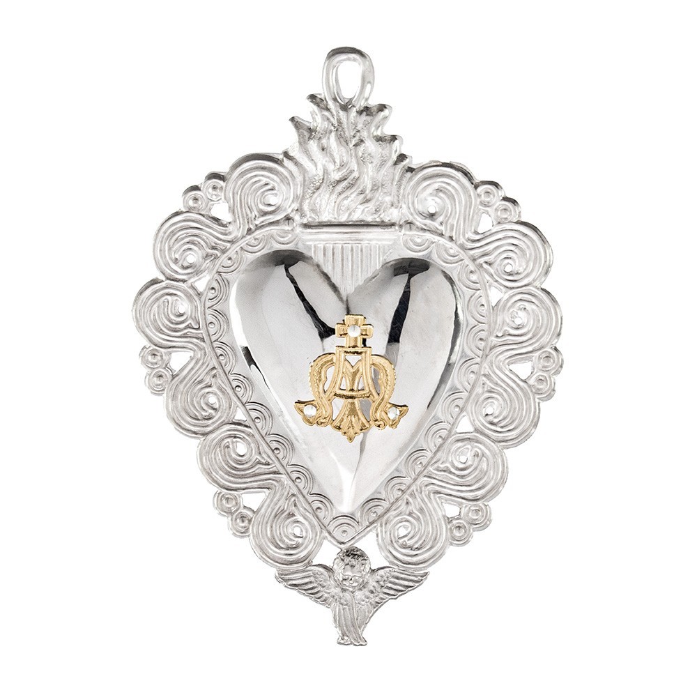 Questo Ex voto è interamente in argento 925 con fiamma e decori, misura 10x7 cm. Made in Italy. Viene fornito con scatola.