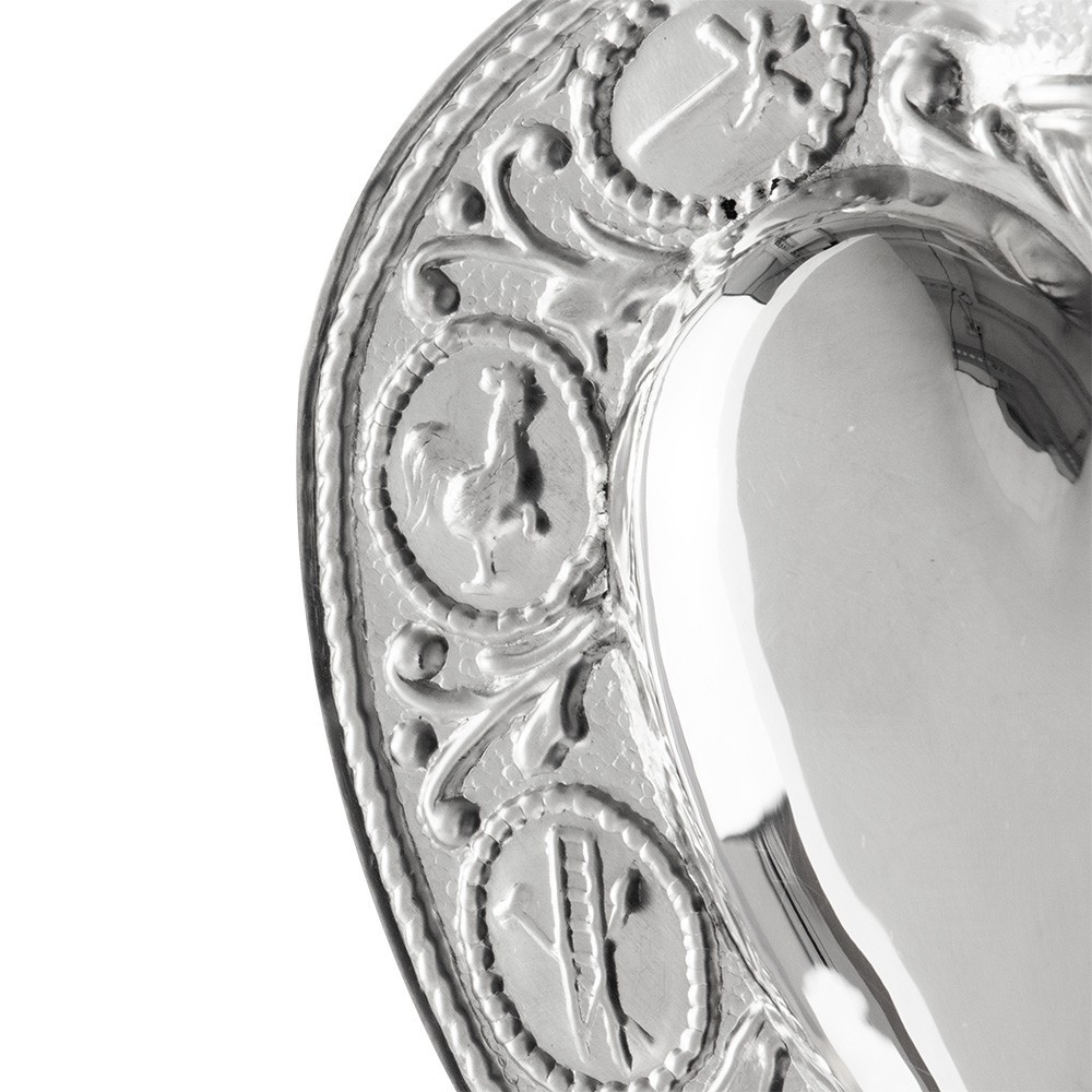 Realizzato interamente in metallo color argento, con iniziali GR dorate.