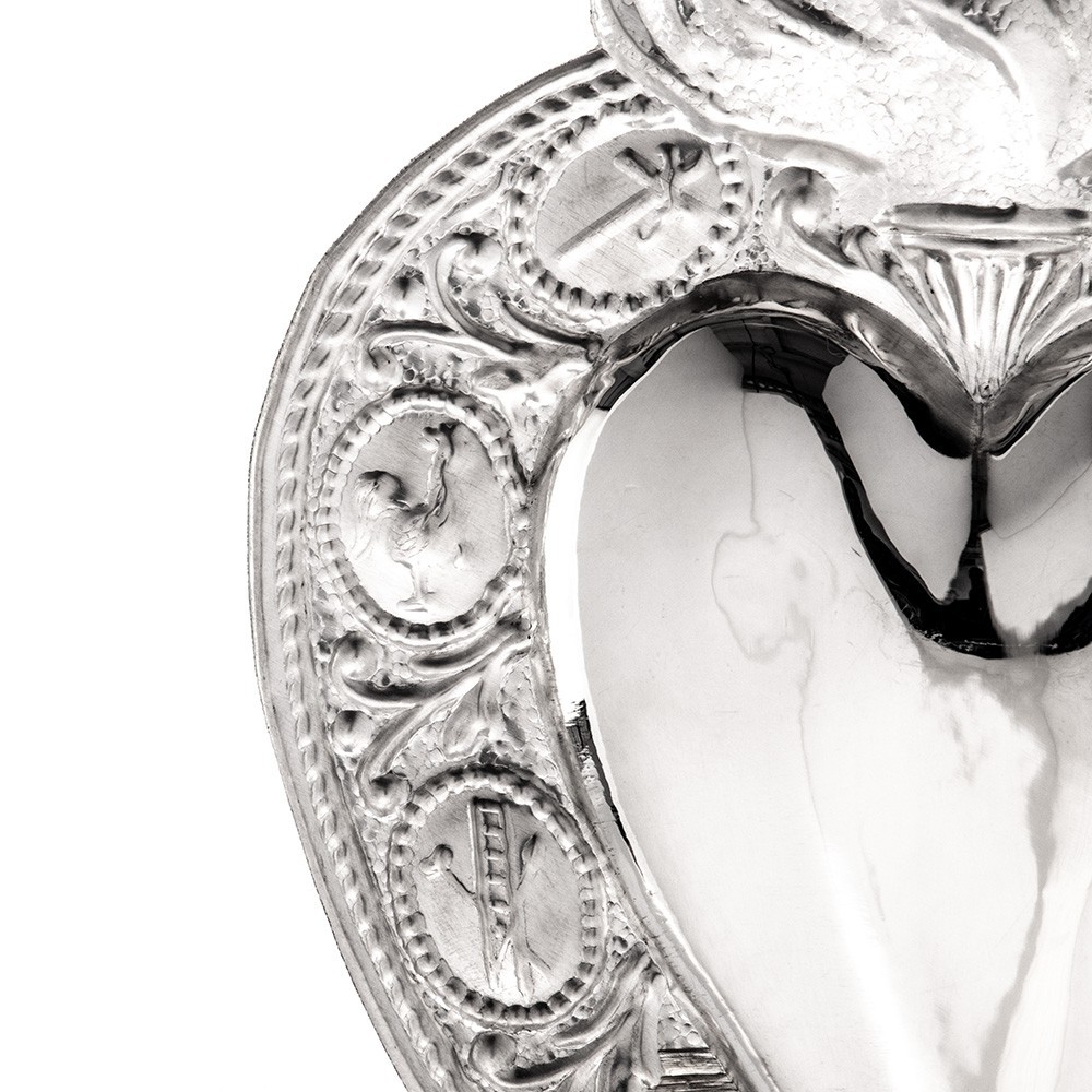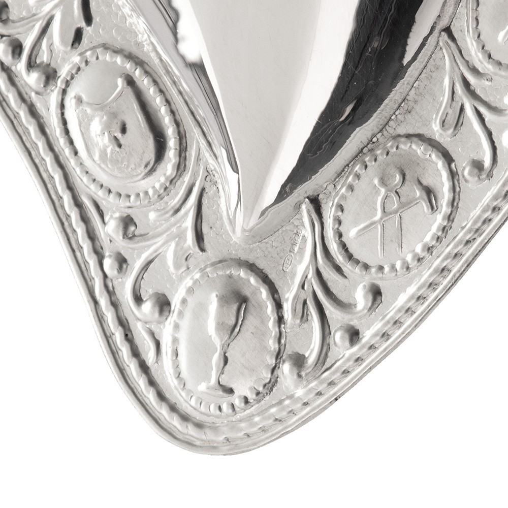 Lavorazione artigianale di ottima qualità, disponibile sia in argento che metallo.
