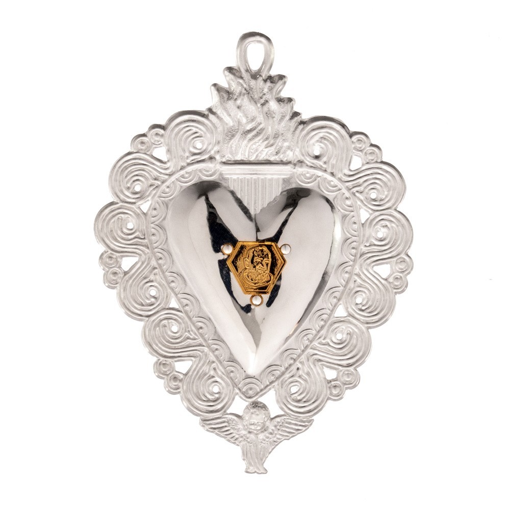 Cuore Votivo in metallo argentato, misura 20x13,5 cm.