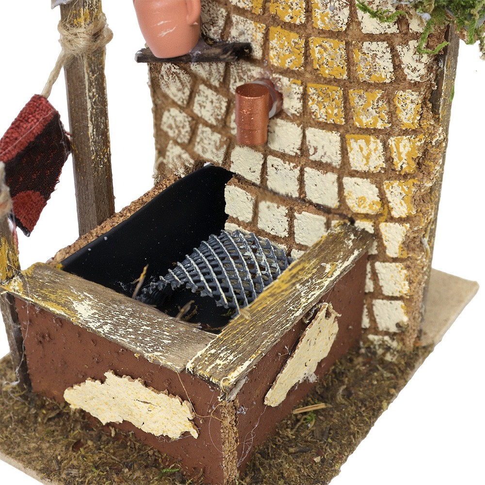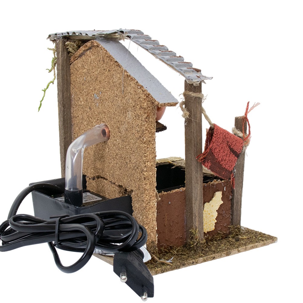 Casolare per il presepe in legno, sughero e muschio.