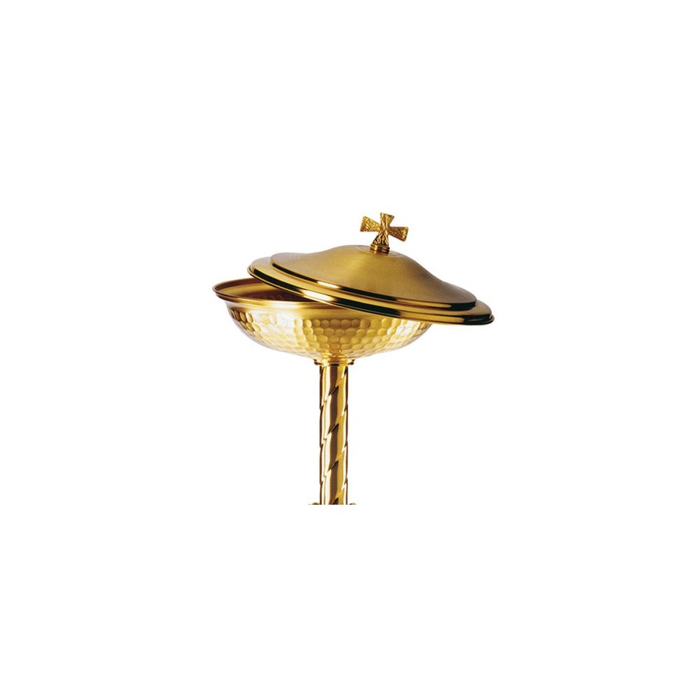 Fonte battesimale in ottone argento, h 40 cm.