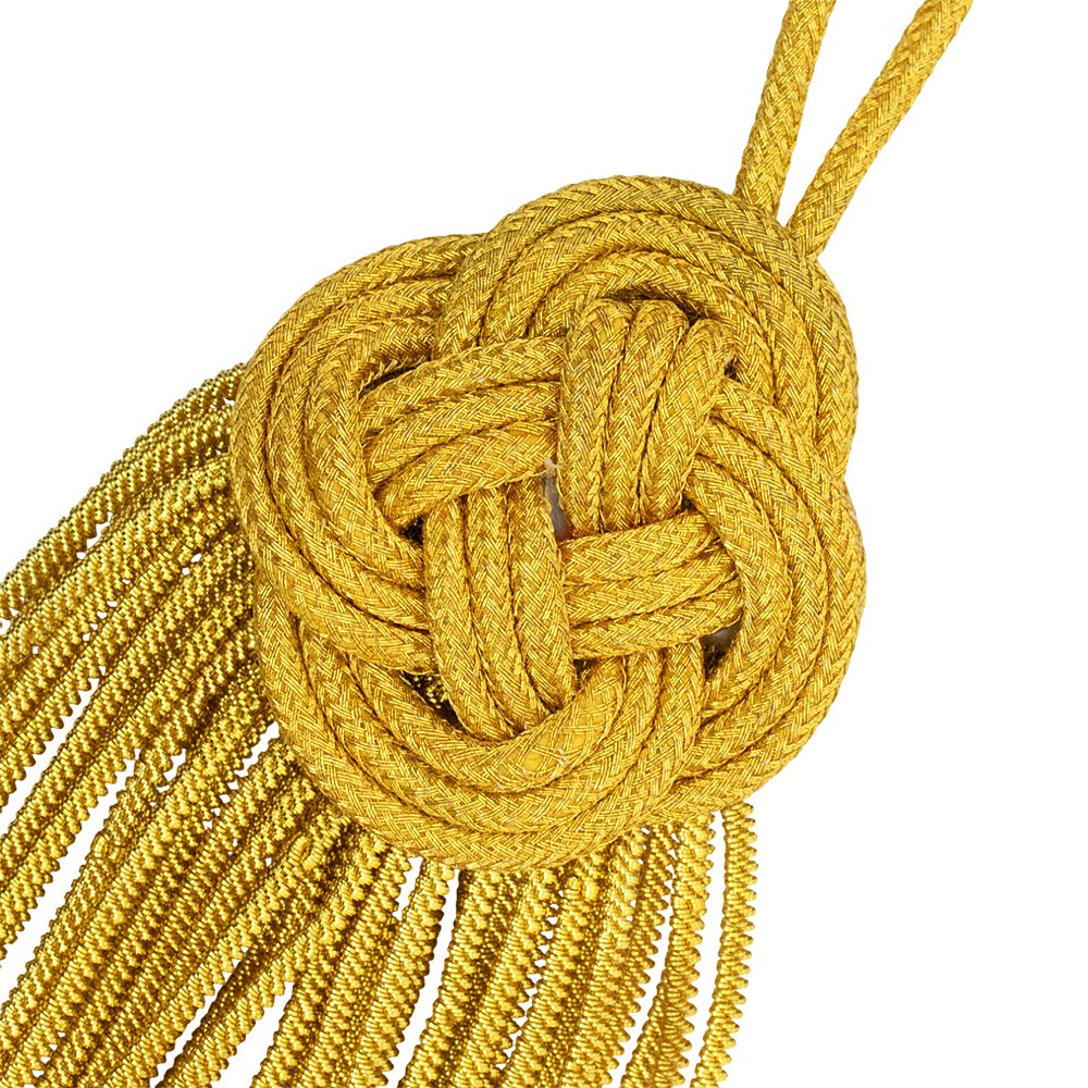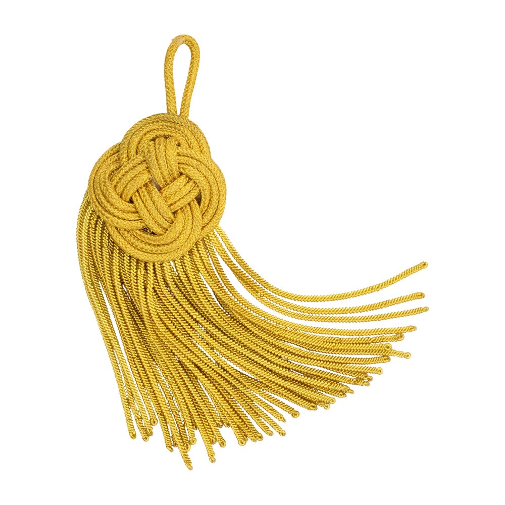 Fiocco piatto in canutiglia color oro, adatto per adornare piviali sacerdotali. Completo di cordoncino.