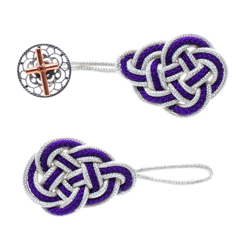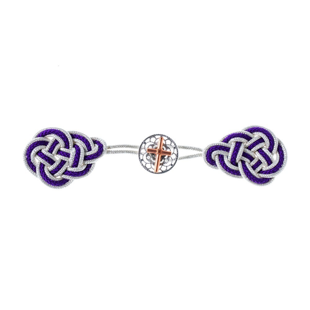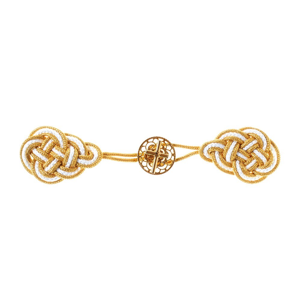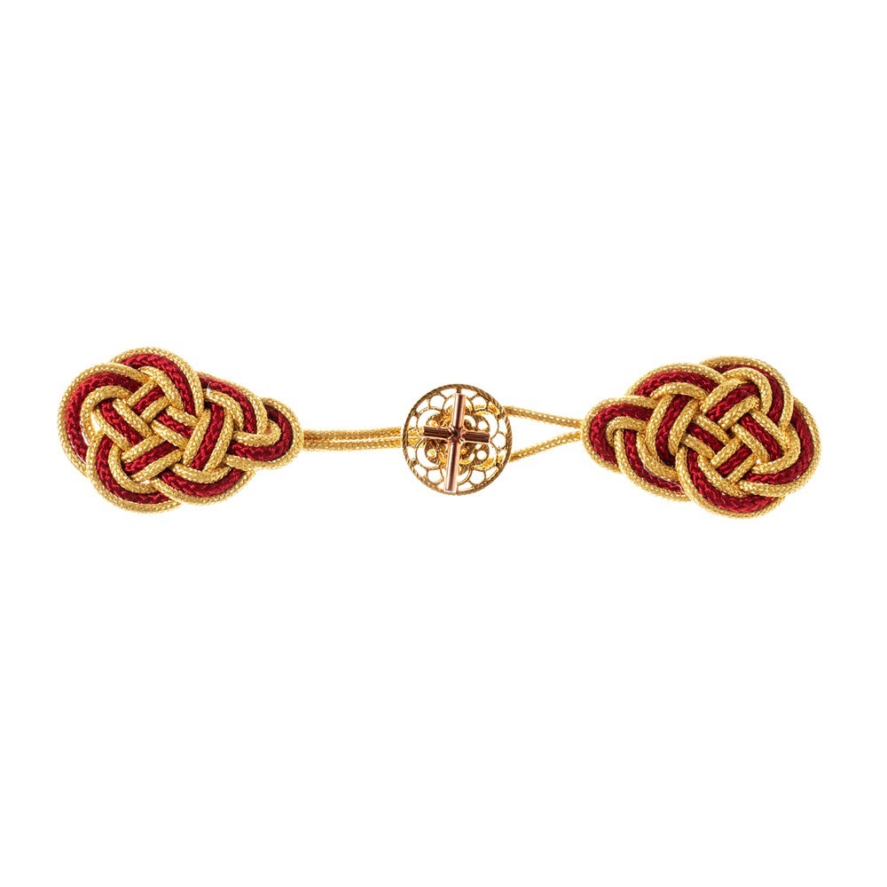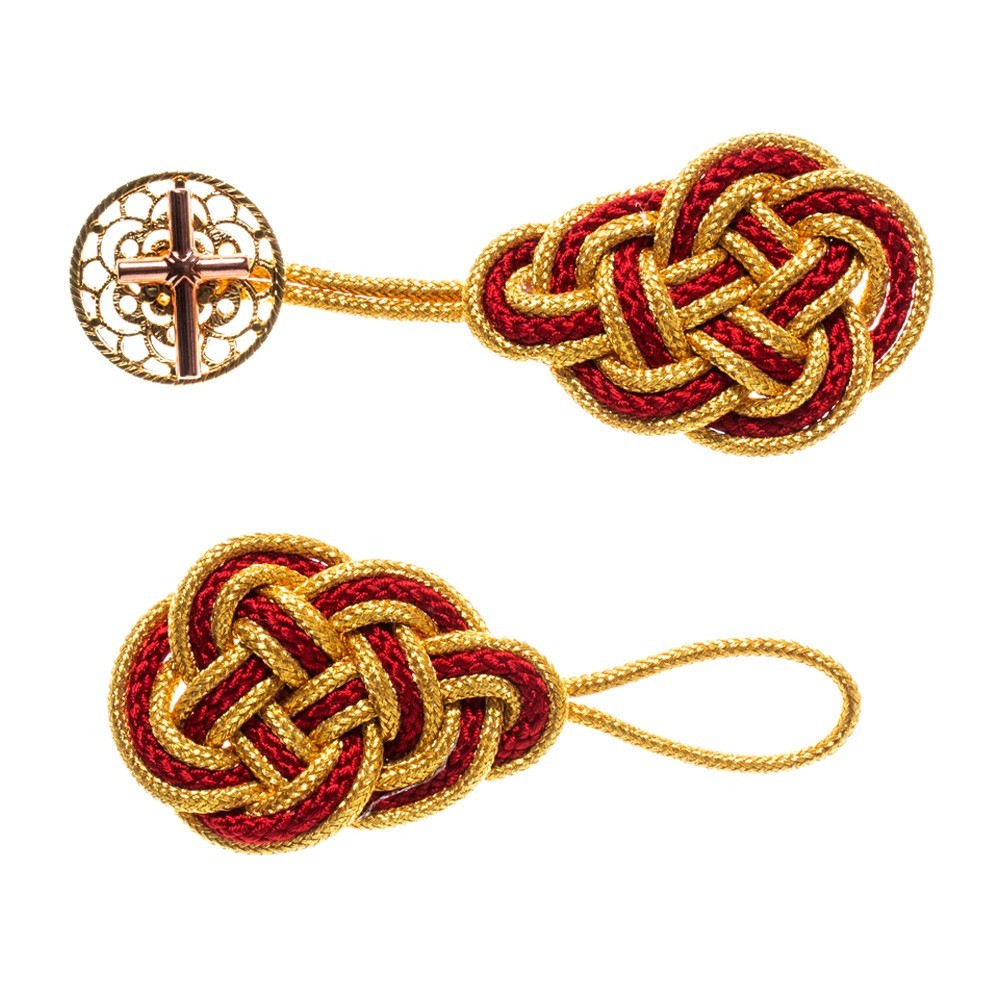 Gancio per il piviale realizzato in metallo con passamaneria in rayon colorata. Questo prodotto è realizzato in Italia.