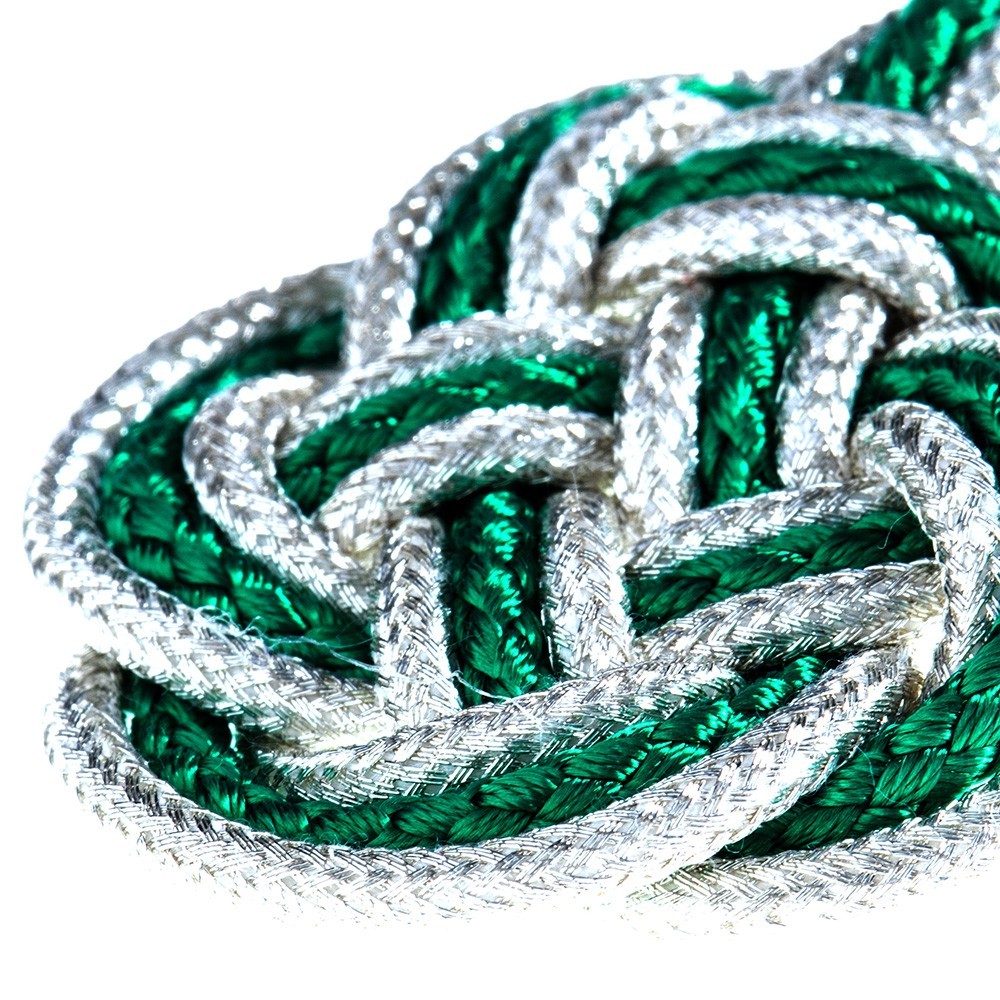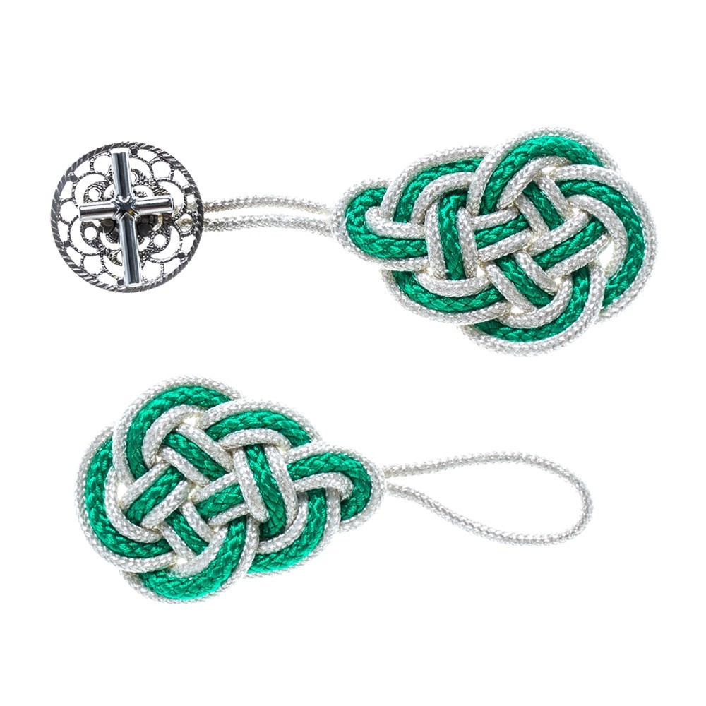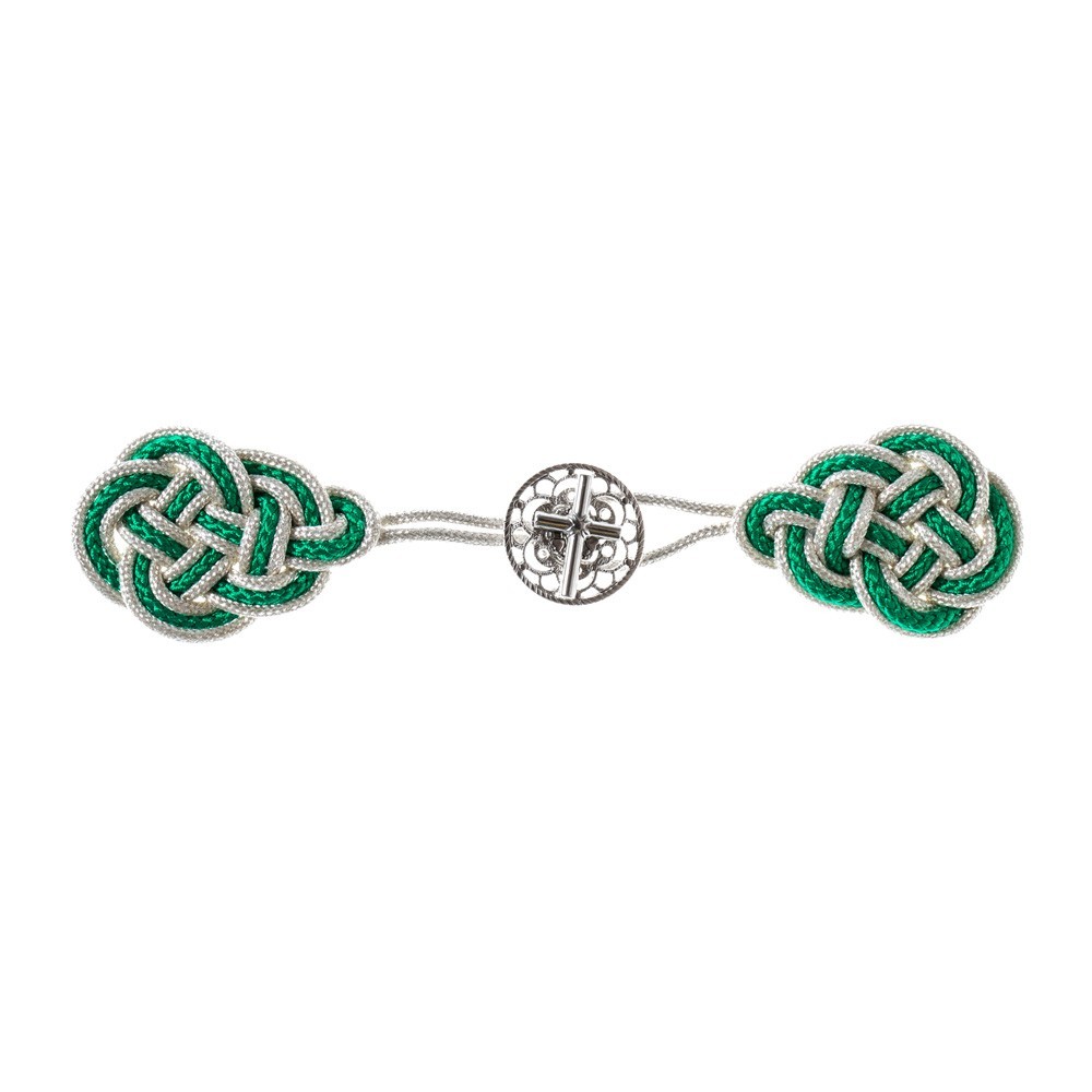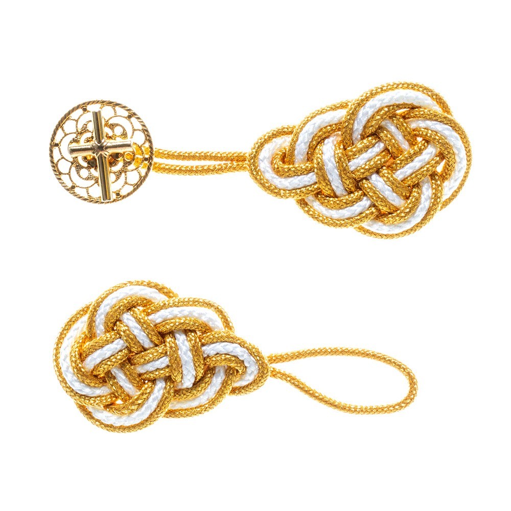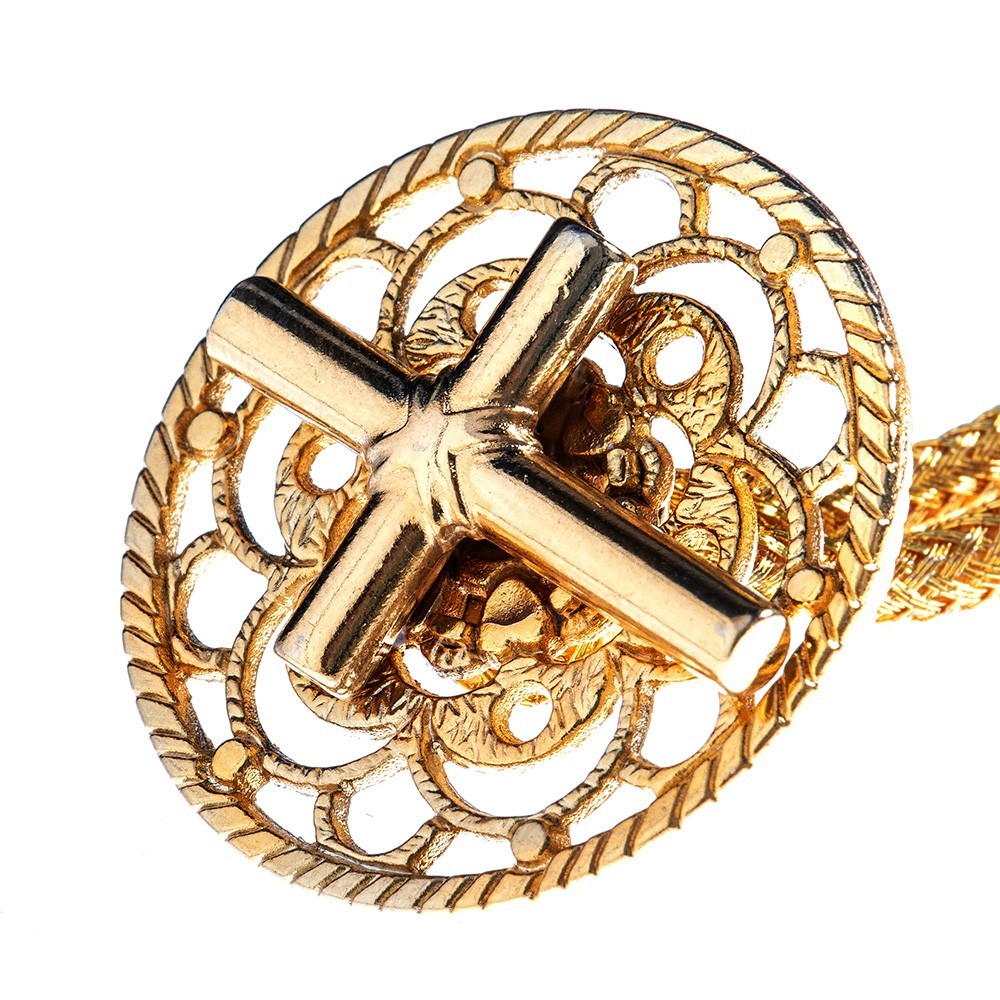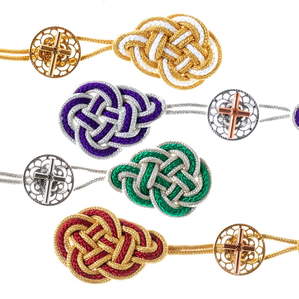 Gancio per il piviale realizzato in metallo con passamaneria in rayon colorata. Questo prodotto è realizzato in Italia.