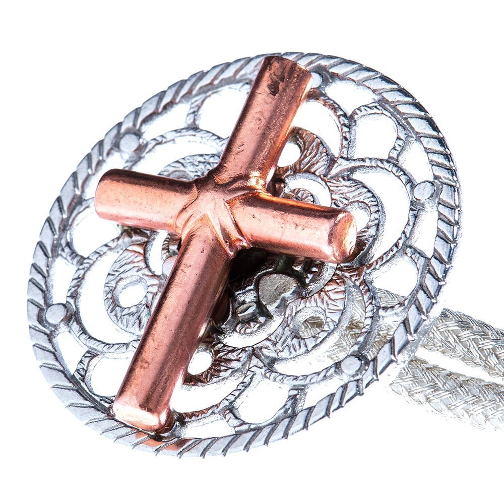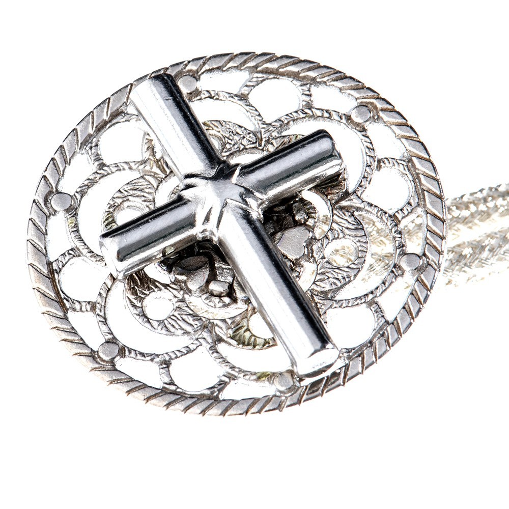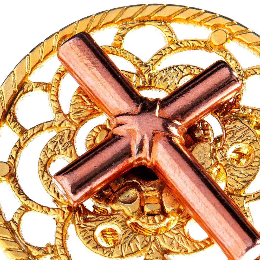 Consegna in 2 settimaneRealizzato interamente in metallo a forma di fiore e croce in rilievo.