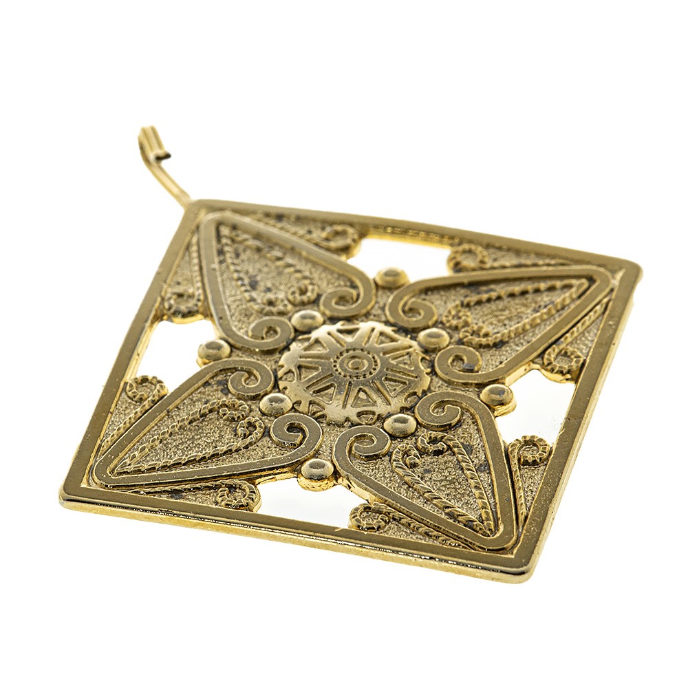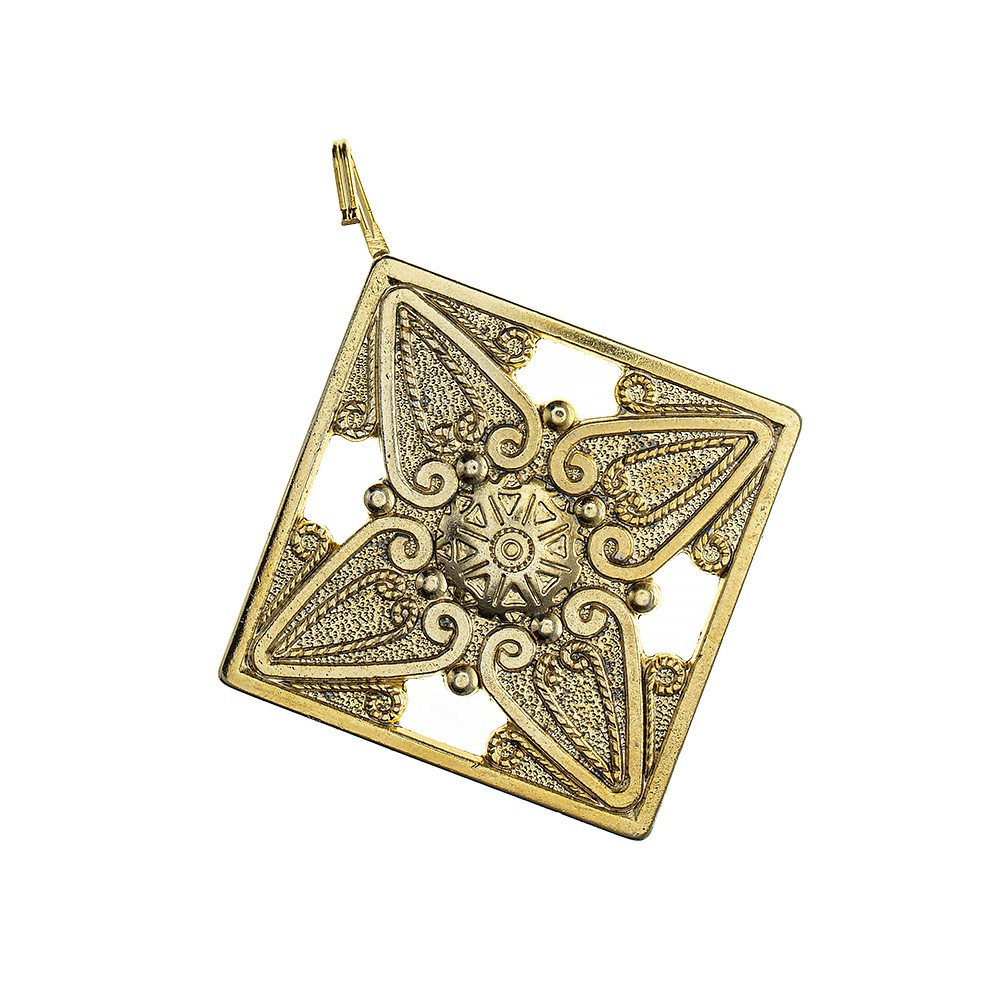 Realizzato in metallo dorato, completo di catenella