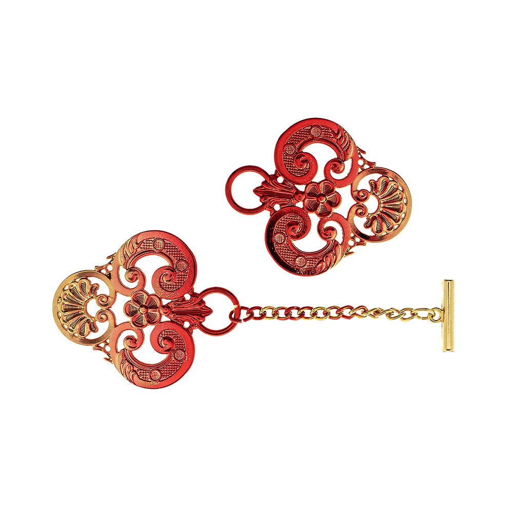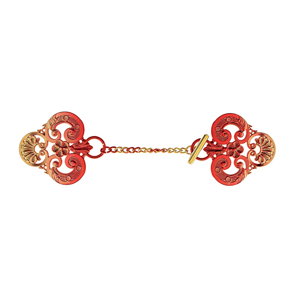 Gancio oro e rosso decoro "giglio"per piviale e paramenti sacri.
