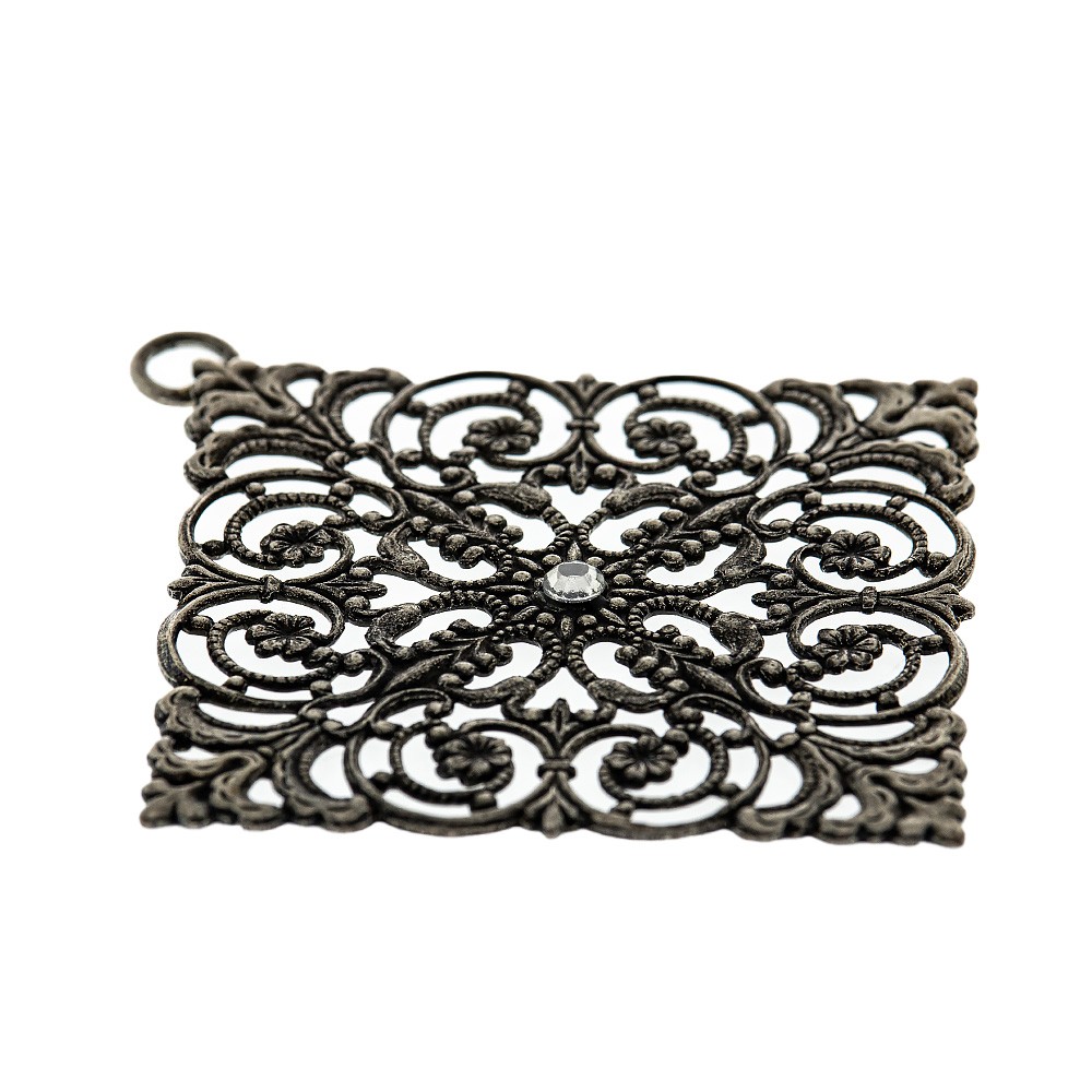 Gancio per piviali, mantelle e altri paramenti sacri realizzato in metallo con finitura argento antico e impreziosito con mini pietra trasparente.