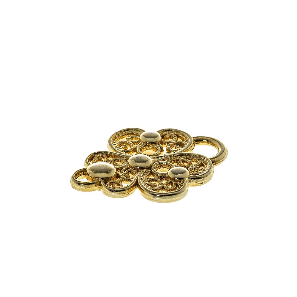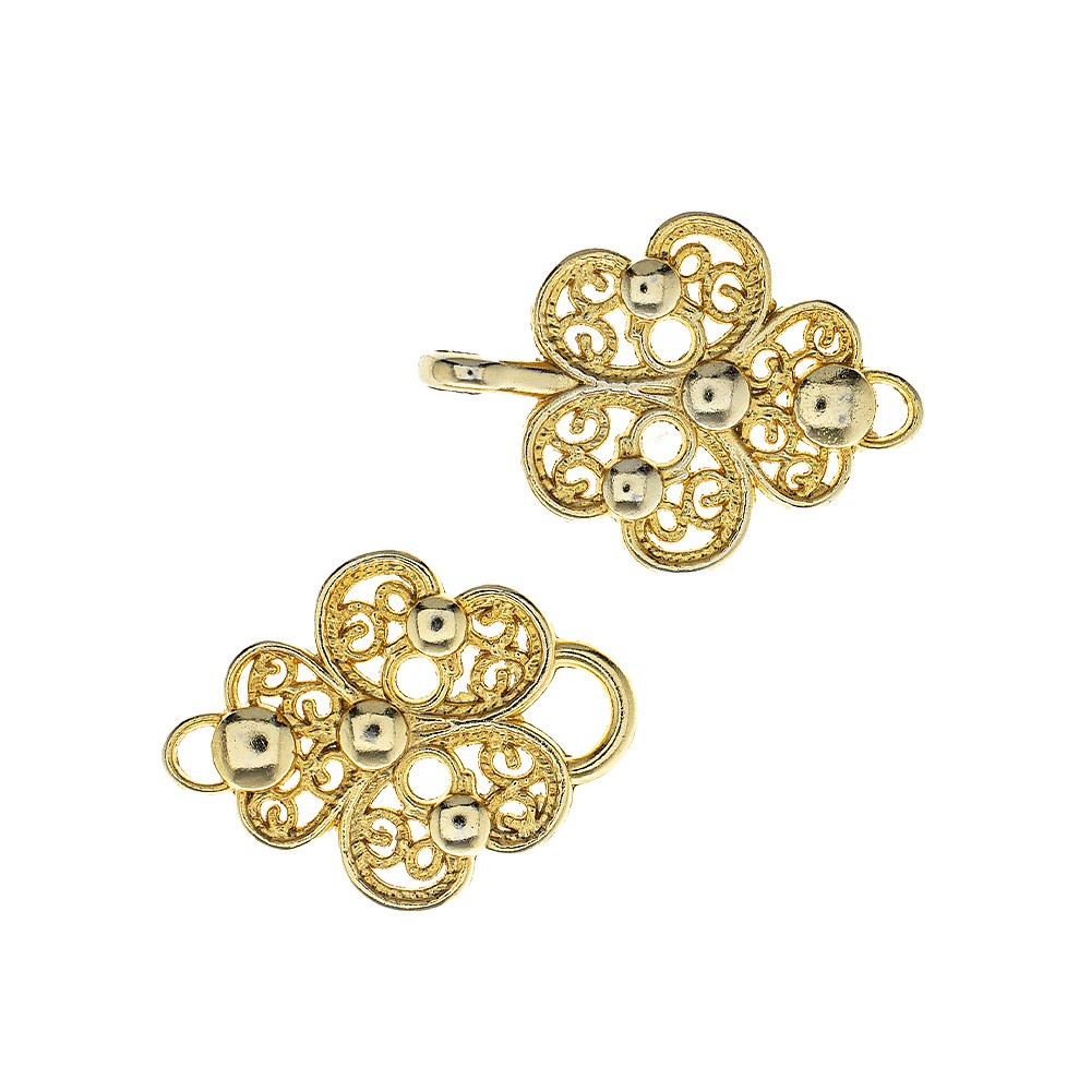 Gancio per piviale prodotto interamente in metallo con finitura dorata.