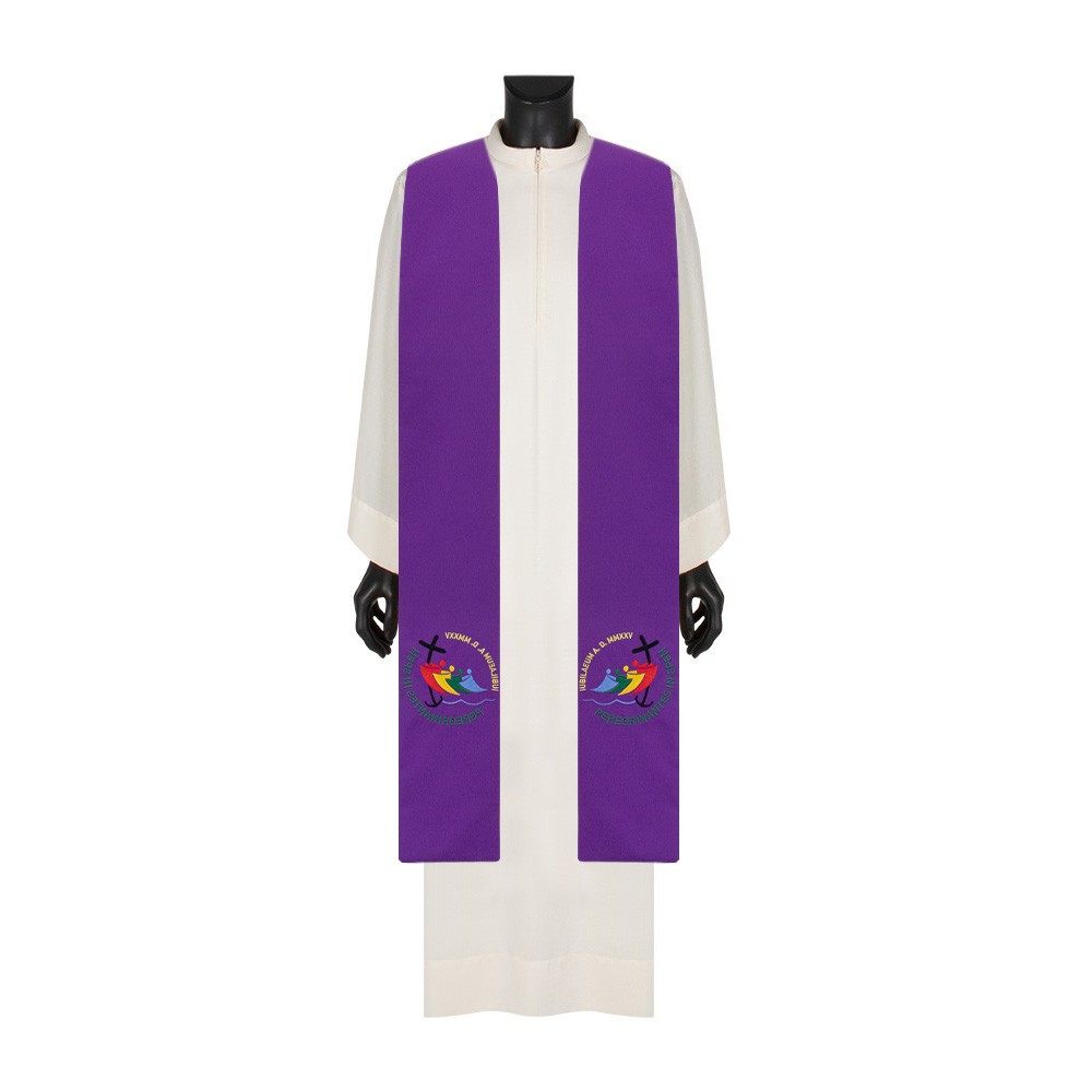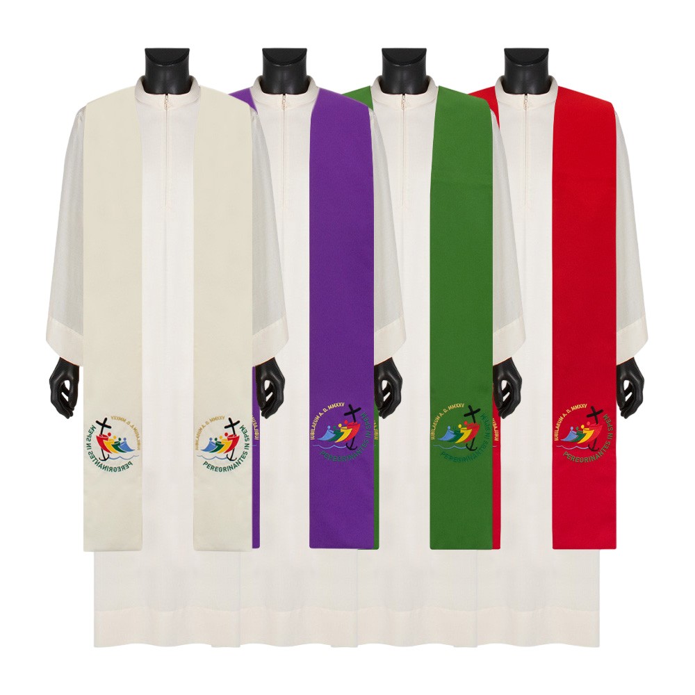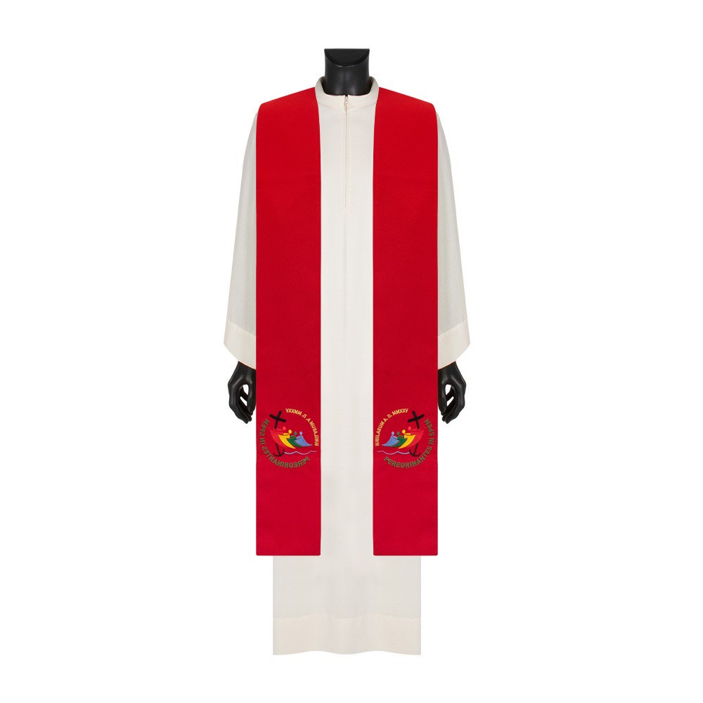 Stola sacerdotale ricamata con logo ufficiale del GIUBILEO Pellegrini di Speranza 2025.
