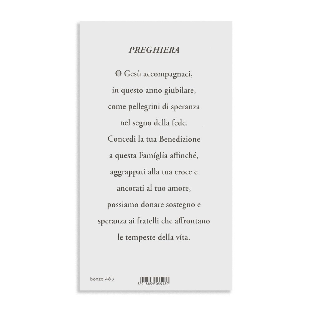 Santino dedicato al Giubileo 2025 Pellegrini di Speranza con immagine e preghiera sul retro.