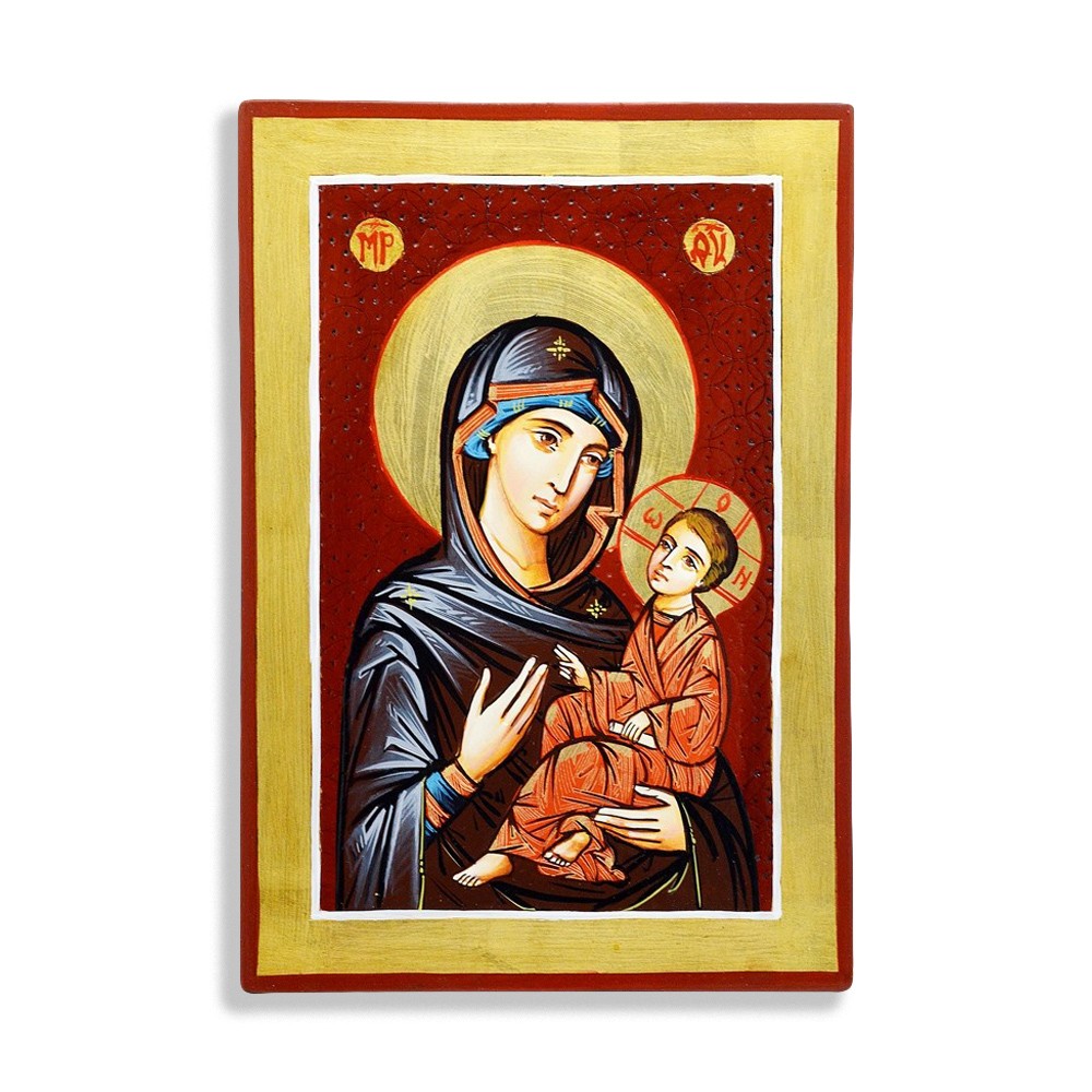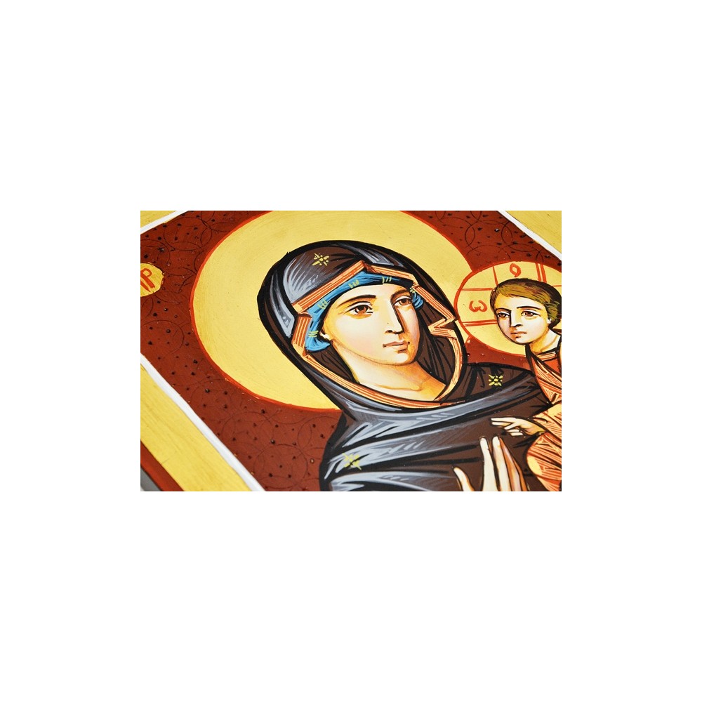 Icona rumena dipinta a mano, nel rispetto della tradizione classica iconografica bizantina (tuorlo d'uovo e pigmenti naturali su legno massello).