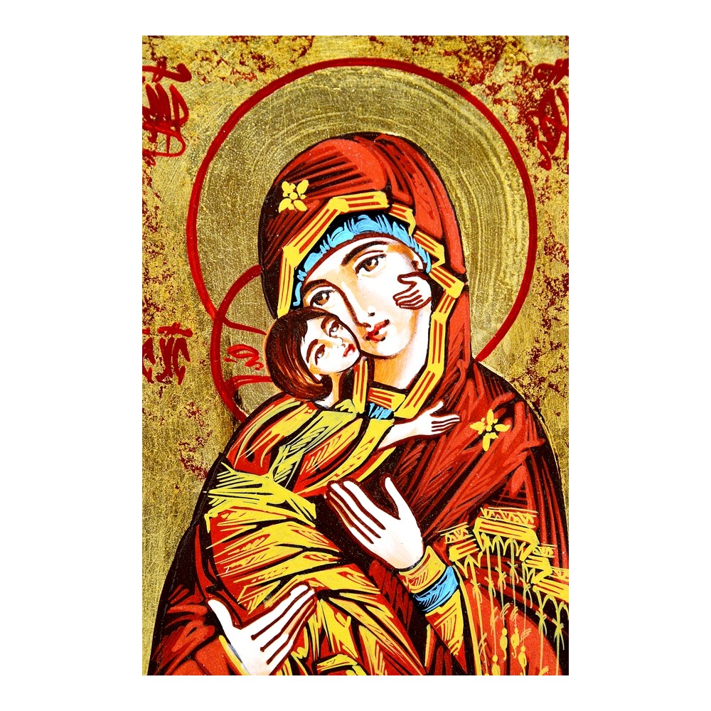 Icona rumena dipinta a mano, nel rispetto della tradizione classica iconografica bizantina (tuorlo d'uovo e pigmenti naturali su legno massello).