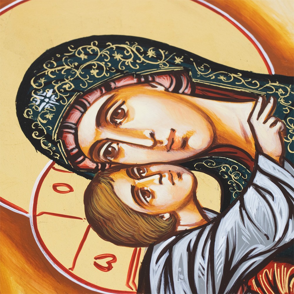 Icona dipinta a mano di origine rumena con raffigurazione della Vergine con Bambino.