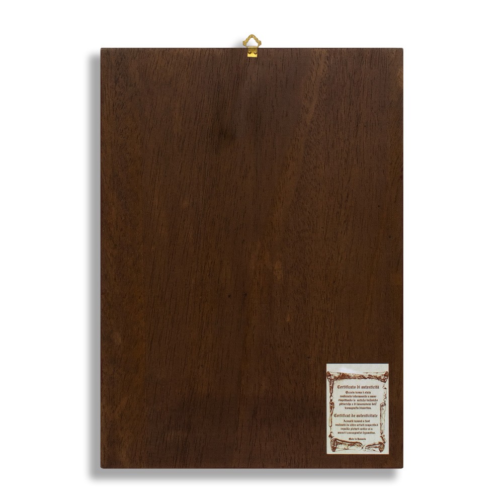 Realizzata su legno pregiato e dipinta finemente a mano da abili maestri iconografi di scuola rumena.