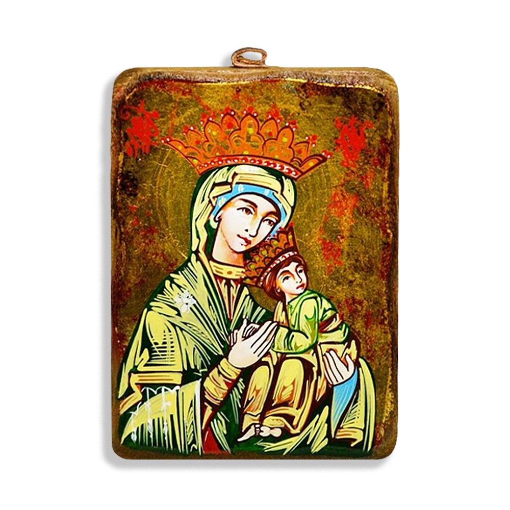 Icona Madonna con Bambino serigrafa e scavata, 13,5x18,5 cm.