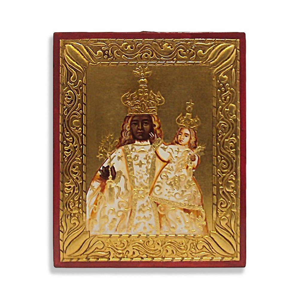 Icona serigrafata e frastagliata della Madonna con Bambino, 20x26 cm.