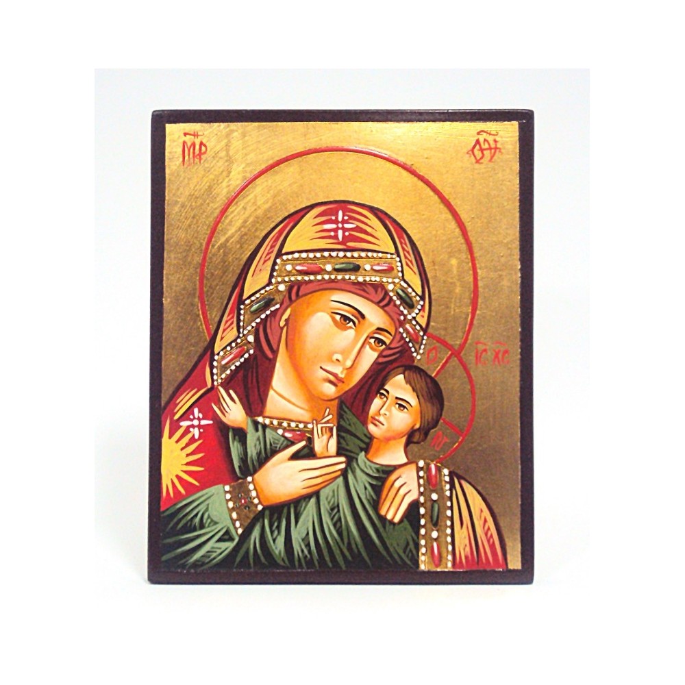 Dipinta interamente a mano su legno massello, secondo la classica tradizione iconografica su foglia oro. Corredata di certificato di autenticità sul retro.