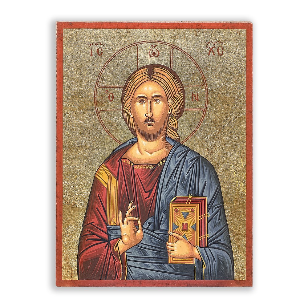Icona sacra raffigurante l'immagine di Gesù Pantocratore. L'icona è realizzata con tecnica di serigrafia liscia e rifinita su foglia oro.
