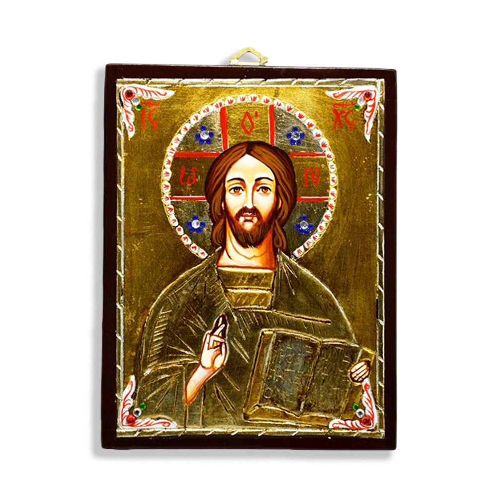 Icona serigrafata e frastagliata di Gesù Pantocratore, 40x30 cm.