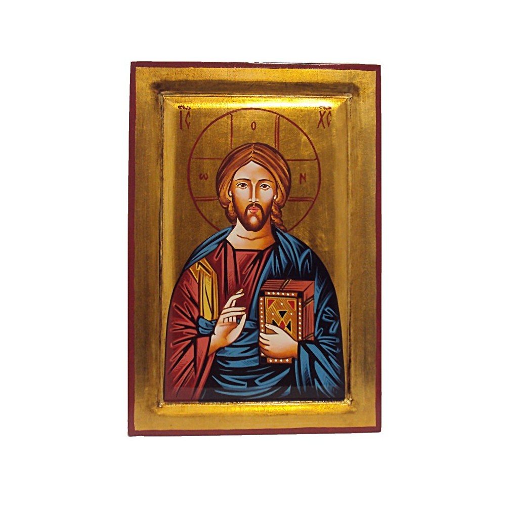 Icona serigrafata e frastagliata di Gesù Pantocratore, 40x30 cm.
