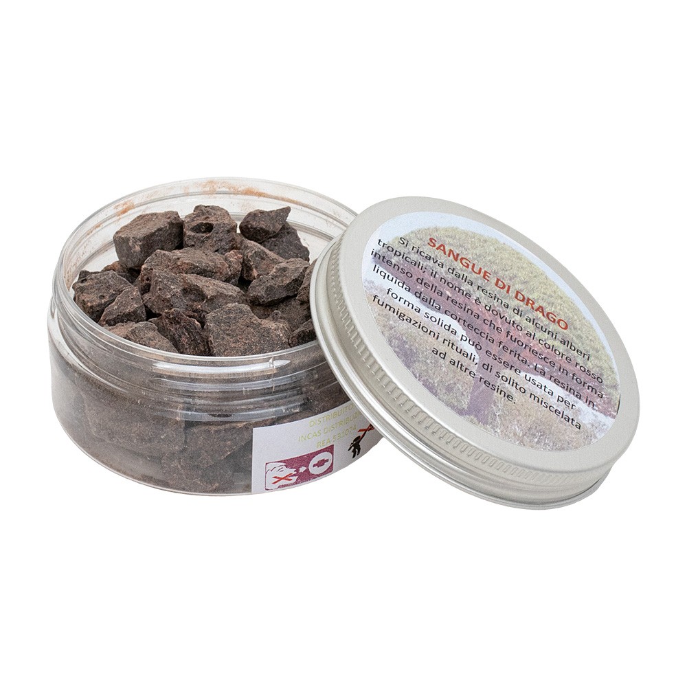 Sangue di Drago, si ricava dalla resina di alcuni alberi tropicali; il nome è dovuto al colore rosso intenso della resina che fuoriesce in forma liquida dalla corteccia ferita. La resina in forma solida può essere usata per fumigazioni rituali, di solito miscelata al altre resine.