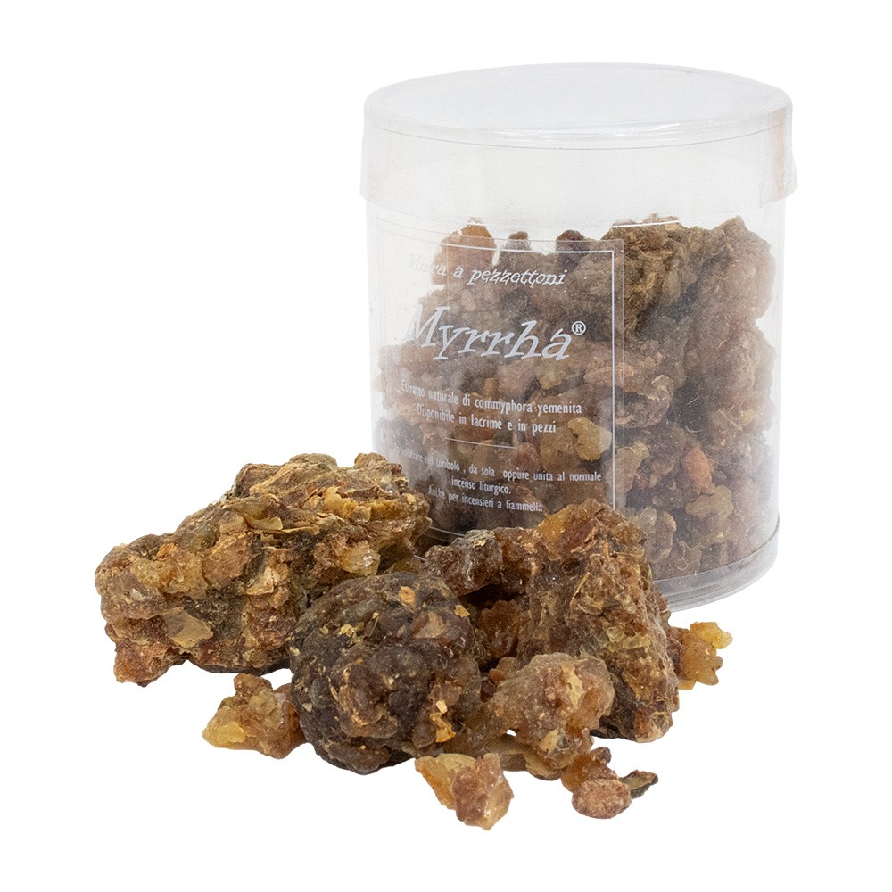 Incenso liturgico MIRRA a pezzettoni in confezione da 500 grammi.