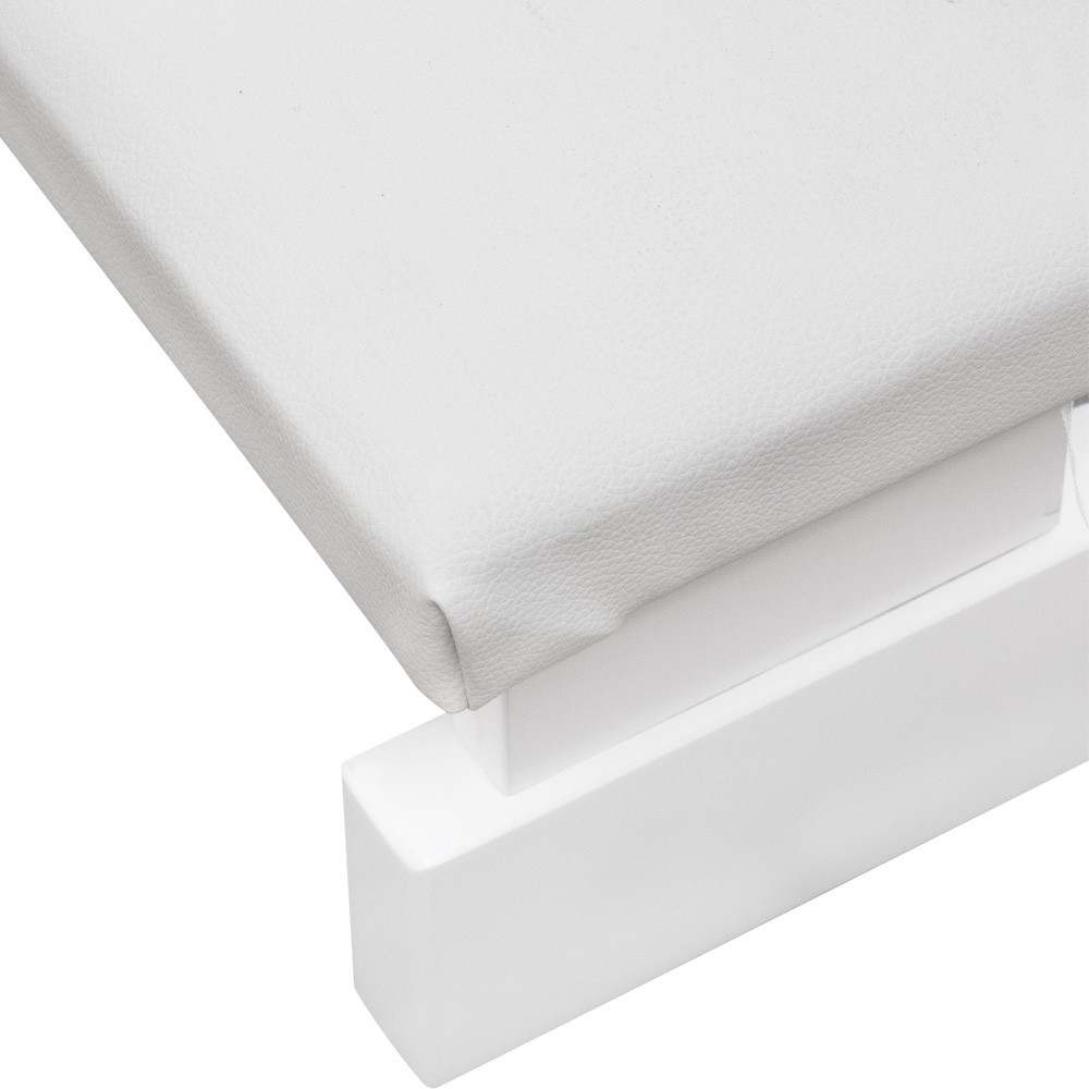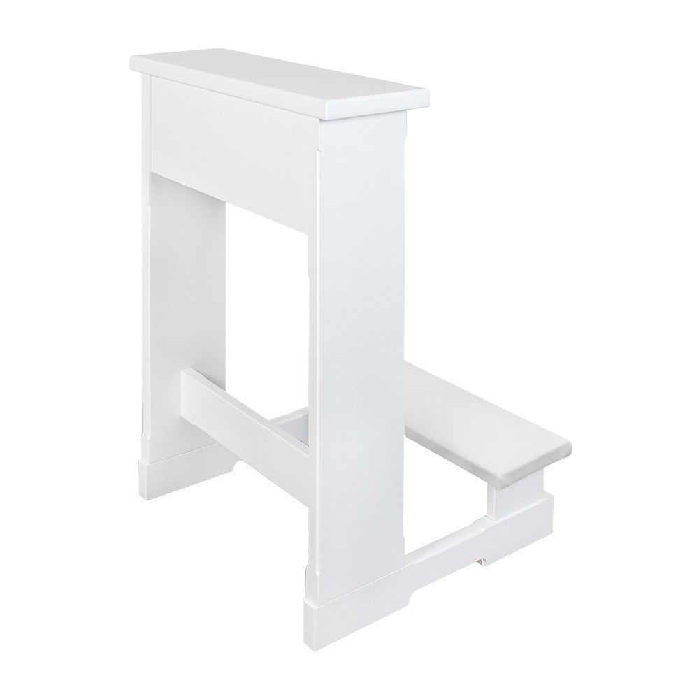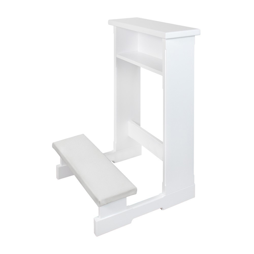 Inginocchiatoio da preghiera monouso realizzato interamente in legno bianco, completo di mensola all'interno e imbottitura.