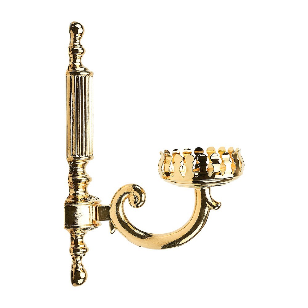 Supporto rigato a parete per lampada realizzato in ottone dorato. Questo braccio a sospensione è particolarmente indicato per lampadae per il Santissimo.