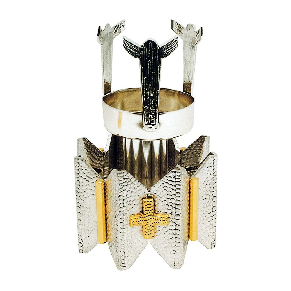 Questa lampada ha una forma ottagonale ed è finemente decorata con croci e profili dorati. La lampada è in ottone bicolore ed è alta 20 cm. Articolo di alta qualità, lavorato e rifiito interamente a mano da una ditta artigianale italiana.